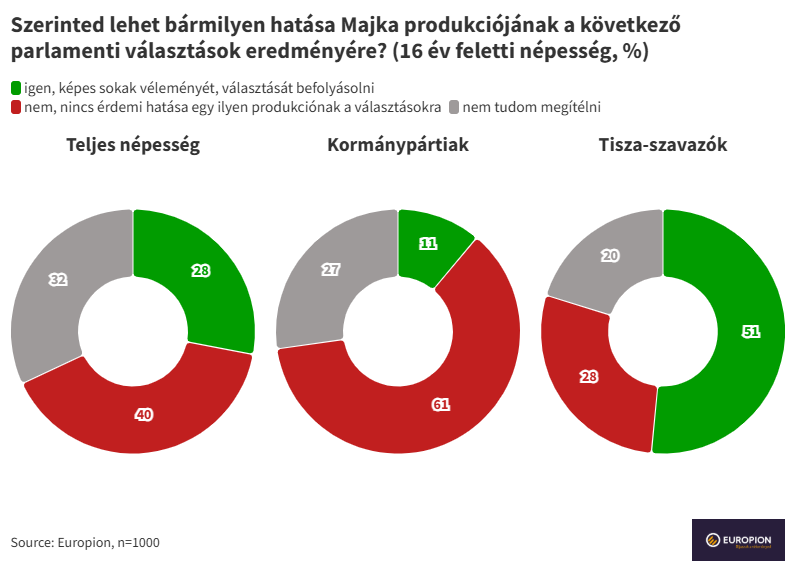 A relatív többség szerint (40%) egy ilyen produkciónak nem lesz hatása a következő parlamenti választások kimenetelére, de 28% szerint igenis képes egy ilyen performansz befolyásolni a népakaratot. Különösen a Tisza-szavazók optimisták ebben a kérdésben (is), 51%-uk szerint hatással lehet a következő választások kimenetelére Majka száma (ezzel szemben a kormánypártiaknak csak 11%-a osztja ezt a véleményt).