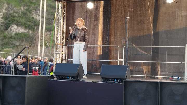 Szalai Kriszta volt a következő fellépő. „Szeressük magunkat, szeressük azt, akik vagyunk, és akkor leszünk képesek másokat is szeretni. Ez hiányzik most leginkább az országból.” – mondta az egybegyűlteknek. A másik, amit tehetünk a bátorság – tette hozzá és elmesélte, hogy egy kolléganője nem meri lájkolni a Facebook-posztjait, mert fél, hogy kirúgják a színházból. Bátorság kell ahhoz, hogy ne szálljanak meg megint az országot az oroszok. „Ne kelljen a hatalom, legyen elég mondjuk négyalom” – javasolta. Nagyon sokan nem tudnak kiszállni a rendszerből, mert sokat tudnak, és az életüket kockáztatnák. Mindenkinek azt üzeni: képviseljék magukat, és tegyenek egy jó országért.