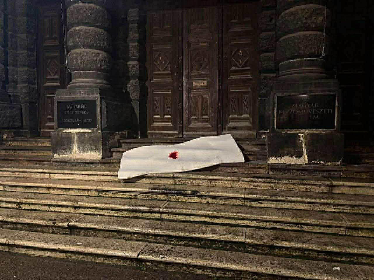 Véres matracot helyeztek el tiltakozó hallgatók a Magyar Képzőművészeti Egyetem Andrássy úti épületének bejáratánál, miután a bíróság első fokon felmentett egy korábbi hallgatót egy kollégiumi szexuális erőszak ügyében.