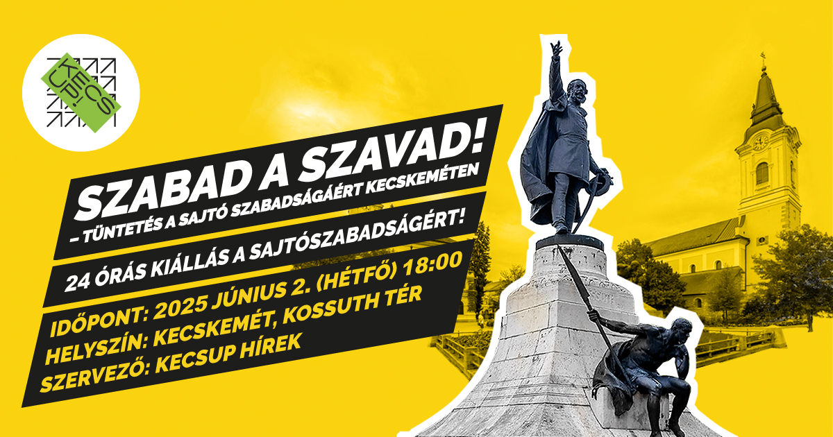Szabad a szavad! címmel tüntetést szervez a KecsUP Hírek szerkesztősége Kecskeméten június 2-án, amelynek célja kiállni a sajtó szabadsága mellett, egyúttal tiltakozni az Orbán-kormány által bevezetni kívánt „átláthatósági törvény” ellen. A hétfő délután 18:00 órakor kezdődő esemény mellett egy 24 órás nyitott szerkesztőségi demonstrációt is tartunk a főtéren. Itt hétfő déltől-kedd délig többek között élő podcast műsorral, sajtó- és civil kerekasztal-beszélgetéssel, politikusi fórummal és számos más, témába vágó programmal várja érdeklődőit a KecsUp Hírek.