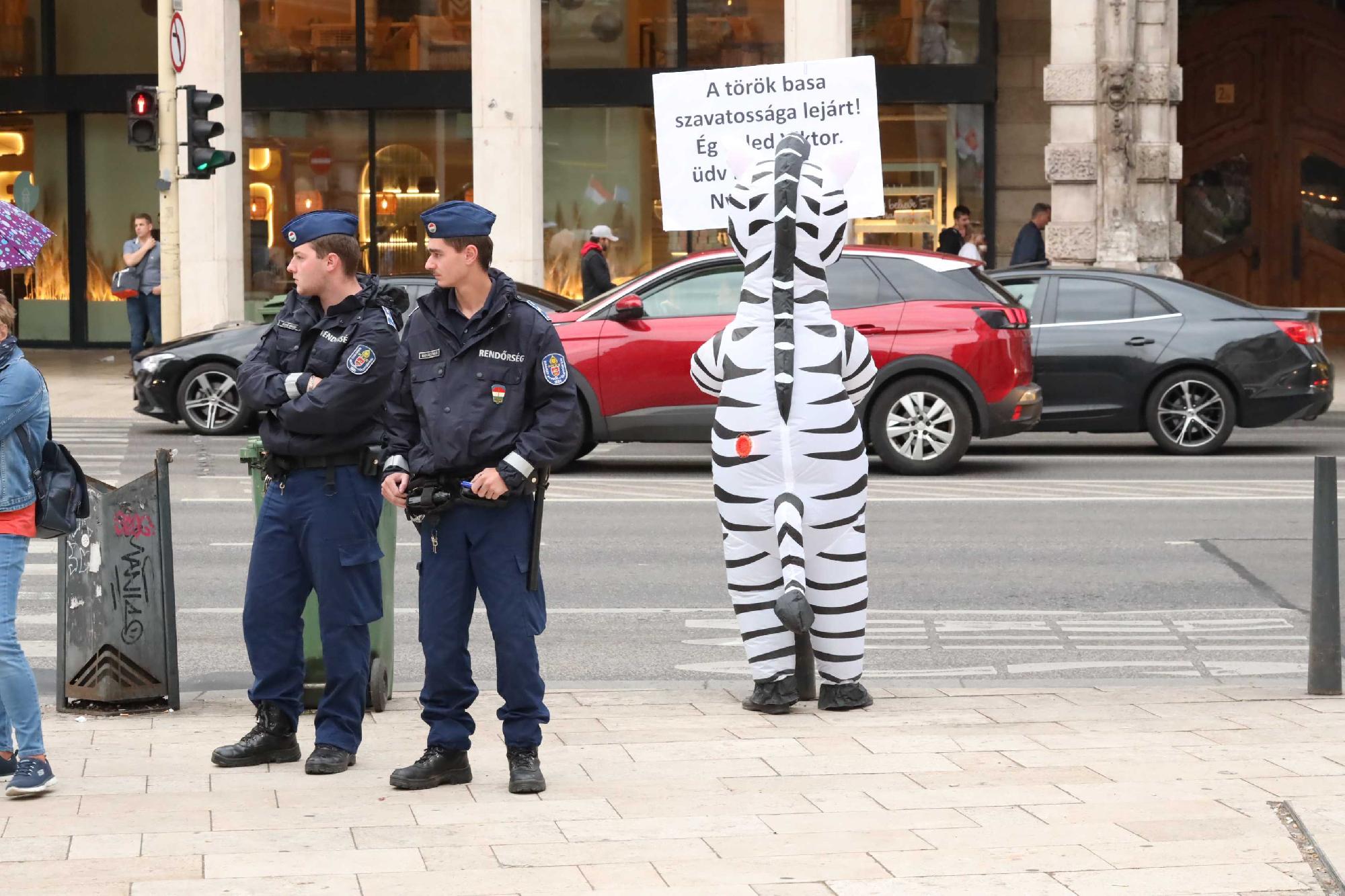 Az esős idő ellenére szokás szerint néhány százan gyűltek össze kezdésre a Ferenciek terére, felbukkantak a korábbi alkalmakról ismerős transzparensek és zebra, de voltak új, egészen aktuálisak is.