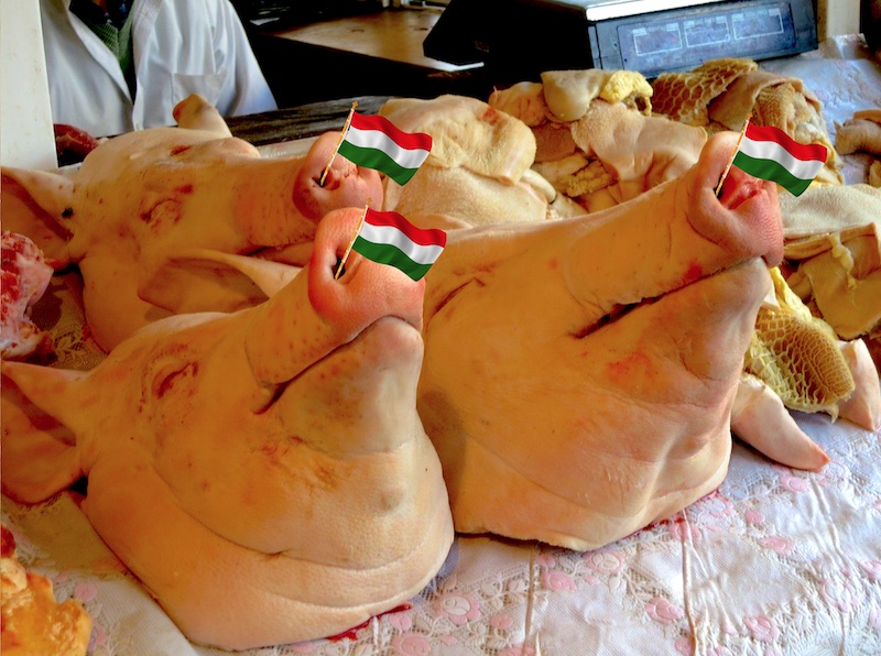 Hiszen maga Mészáros jelentette ki a minap, hogy ő semmiféle üzleti kapcsolatban nem áll a miniszterelnökkel. S miután fel sem tételezhetjük, hogy a miniszterelnök hazudós emberekkel barátkozna, hát érjük be azzal, hogy Mészáros egyszerűen csak tehetséges, szorgalmas, és az is a véletlen számlájára írható, hogy éppen most vett meg egy kis zászlóműveket, ahol fogpiszkálóra ragasztják a magyar nép legfontosabb jelképét, a nemzetiszín lobogót, amelyért Petőfitől Dugovics Tituszig annyian áldozták életüket, s most aztán egy disznóba szúrják. Tudják, nem bot és vászon – hanem szépen csengő magyar forintok bizonyos Lőrinc barátnak.