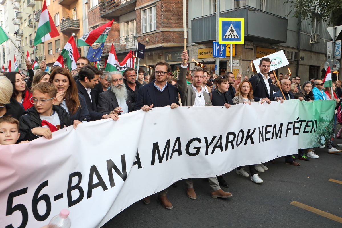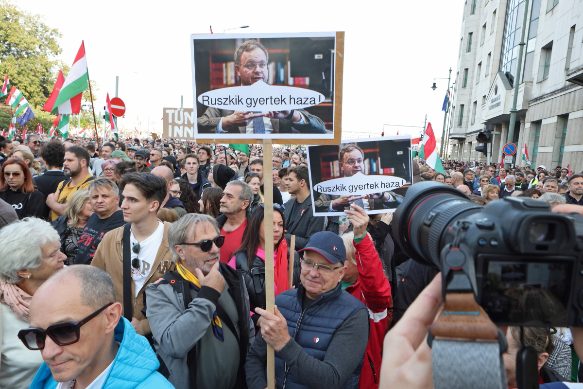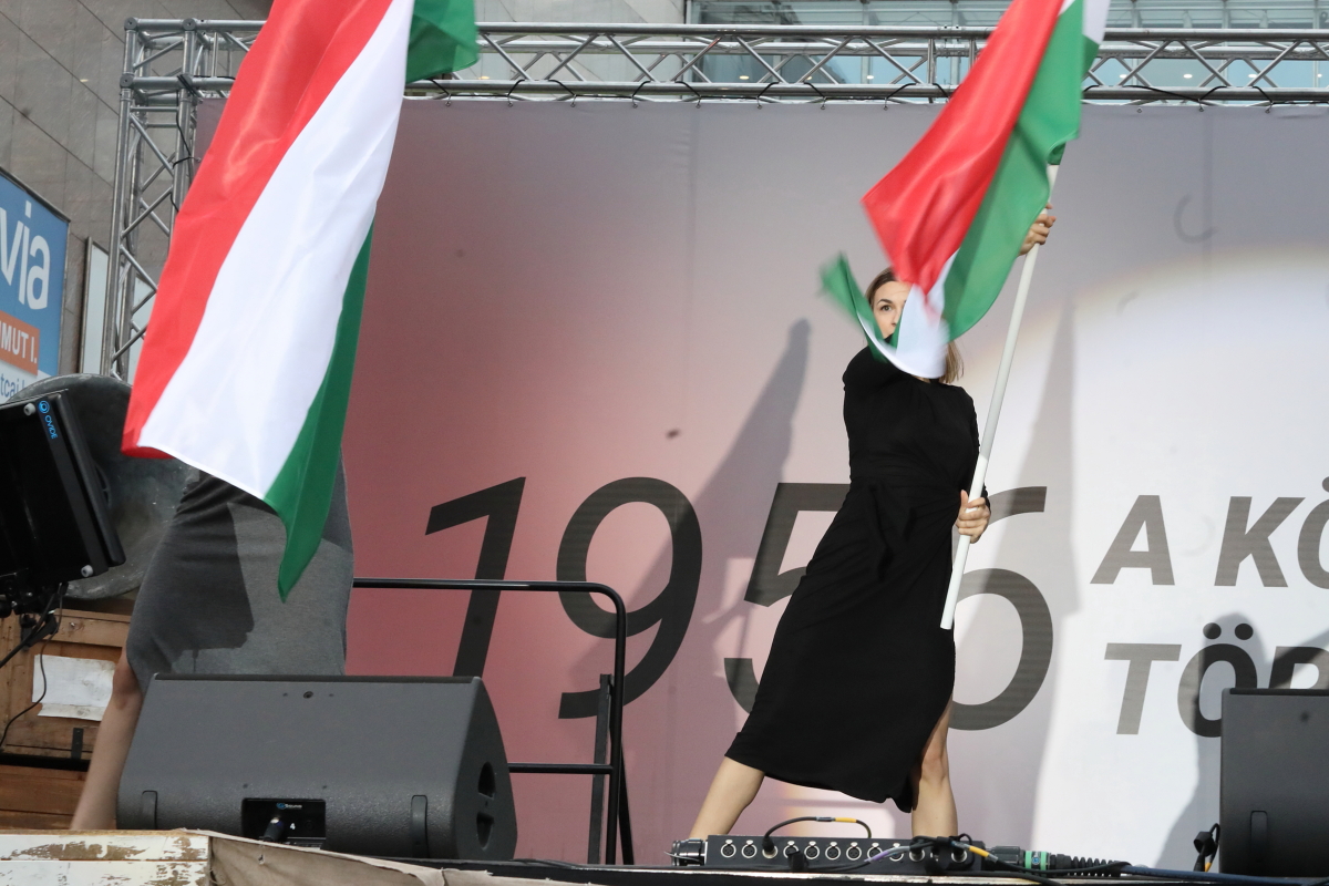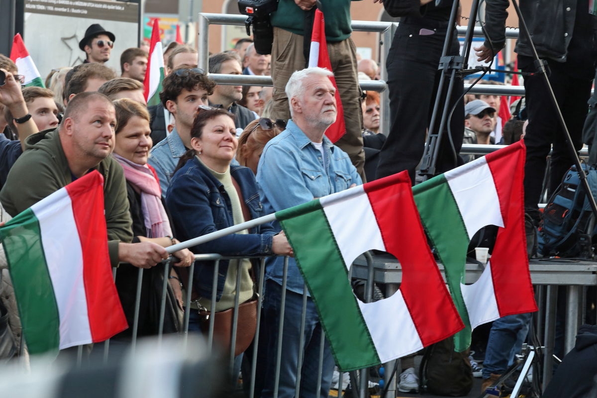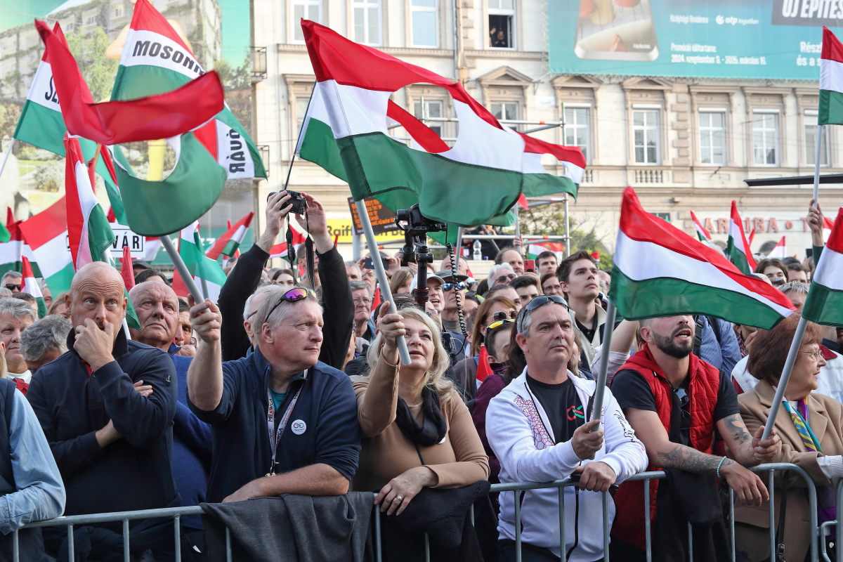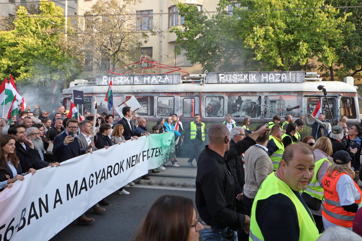 Több tízezer demonstrálóval, köztük a színpadon számos művésszel tartott október 23-i utcai ünnepi rendezvényt a Tisza Párt. Az esemény hangulata és szónoklatai a tizennégy éve folyamatosan kormányzó Orbán Viktor hatalmának közeli megdönthetőségéről szóltak. Ezt a várakozást látszik igazolni sokak számára a Tisza Párt felmérések szerinti folyamatos erősödése, és különösen egy aznap nyilvánosságra került közvélemény-kutatási eredmény, amely a biztos szavazók körében, ha hibahatáron belül is, de már a Tisza előnyét mutatja. A demonstrációról ITT olvashat bővebben, alább pedig az esemény képeit láthatja, arcokat a tömegből, országosan ismert művészeket a színpadon. Fotó: Mátyus László/Klubrádió