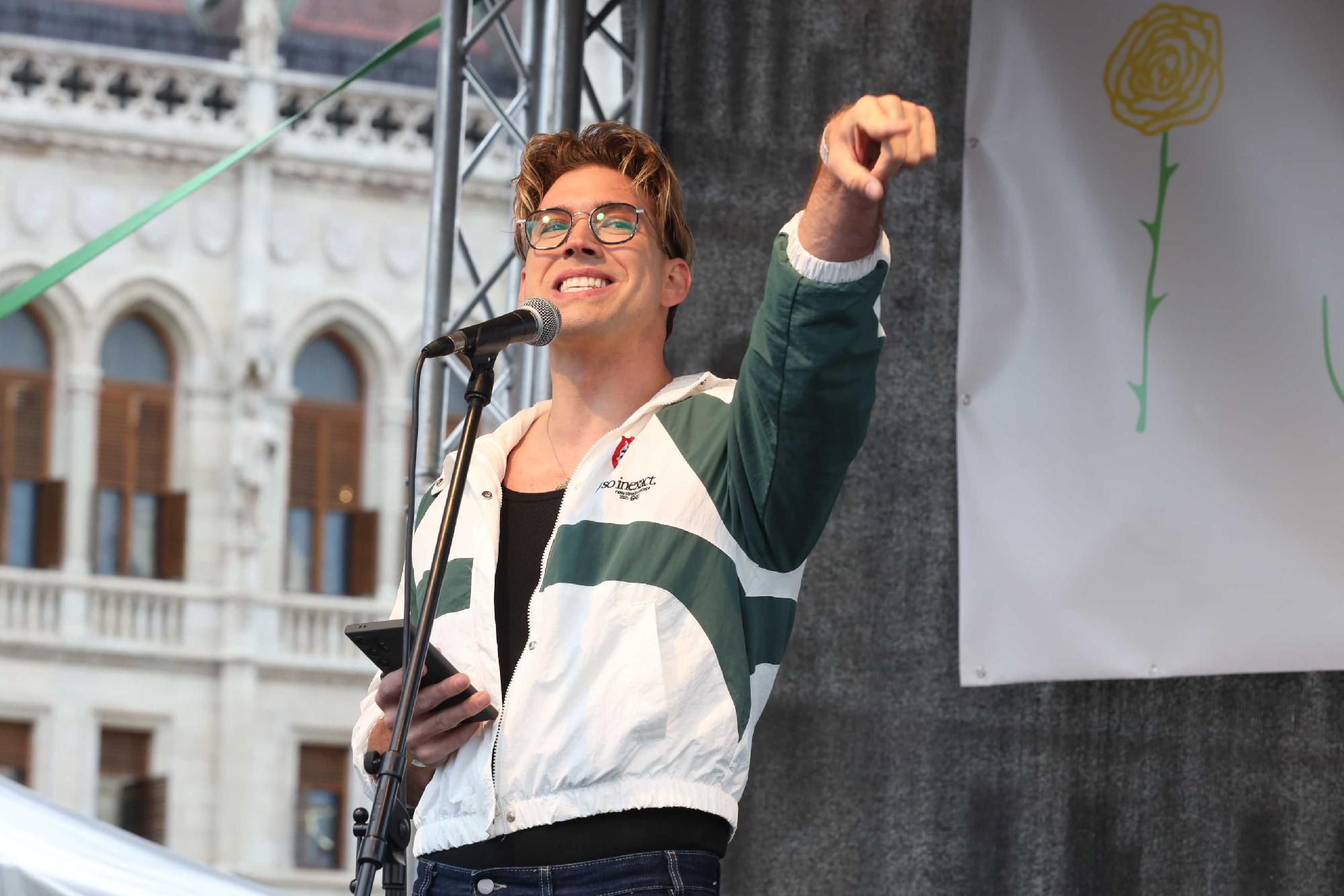 „A sajtószabadság, a szólásszabadság áll támadás alatt, véget kell vetnünk a szorongásnak, az apátiának” – mondta a harmadik felszólaló, Szabó Márton Csoki youtuber, aki figyelmeztetett, hogy fontos az online kiállás is, a Fidesz látja és érti ezt. Lehet, nem sikerül elérni, hogy visszavonják a javaslatot, de azt igen, hogy esetleg nem ebben a formában fogadják el.