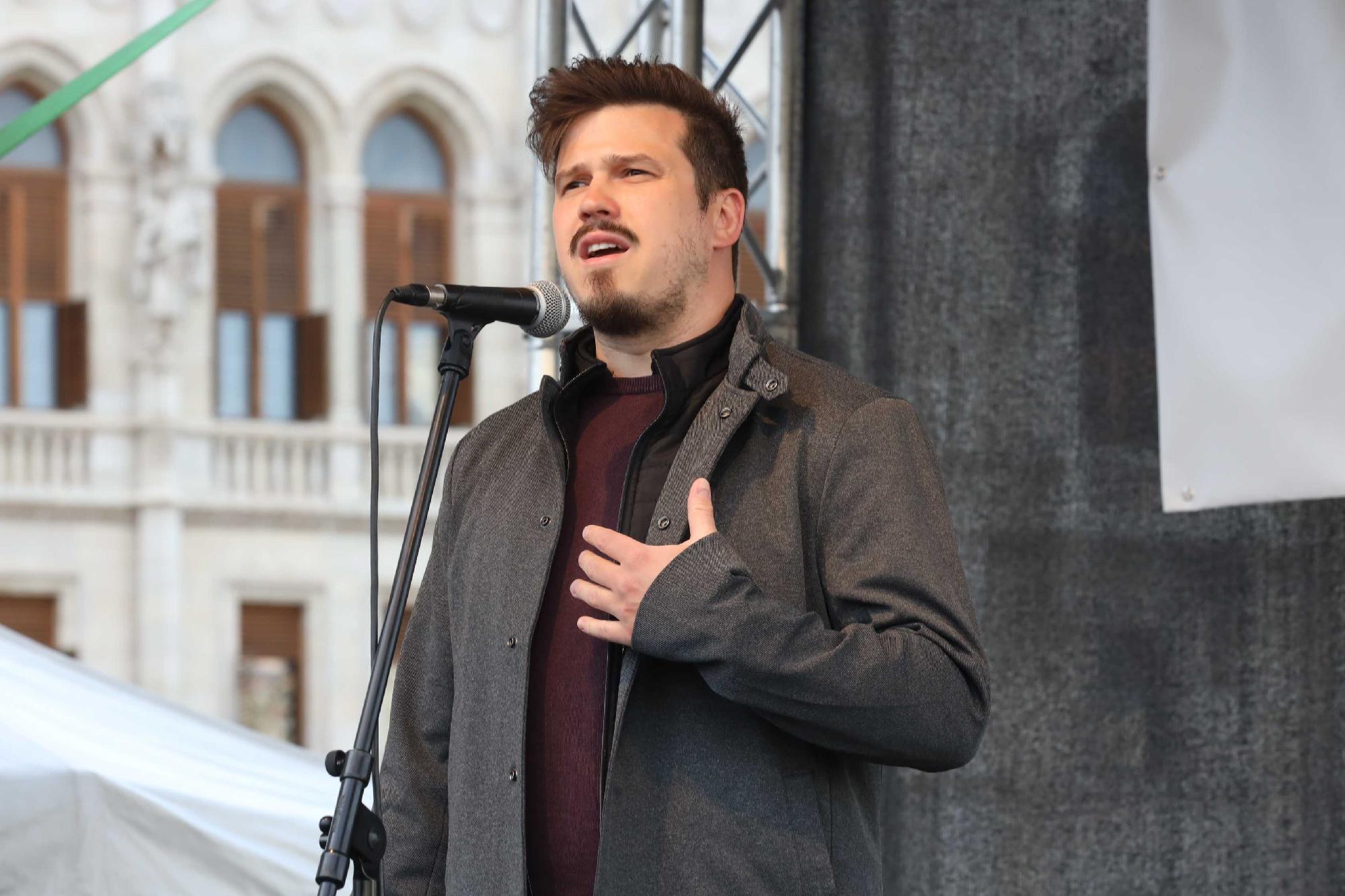 "Csak az nem fél, akit a remény végképp magára hagyott – közölte Osváth Zsolt youtuber, a tavalyi influenszer-tüntetés egyik felszólalója Kányádi Sándort idézve. Talán lesz egy nap, amikor nem gyűlhetünk így össze, vagy csak olyan lapokat olvashatunk, amiket a hatalom cenzúrája is jóváhagyott, vagy a Tényekben csak olyan hírekről számolhatunk be, amiket a kormány jóváhagyott – illetve ezen már túl vagyunk. De amitől ő a legjobban fél, hogy egyszer lesz egy nap, amikor igényünk sem lesz a tenni akarásra. Viszont a kormány is fél, emiatt szörnyű dolgokra lehet képes.