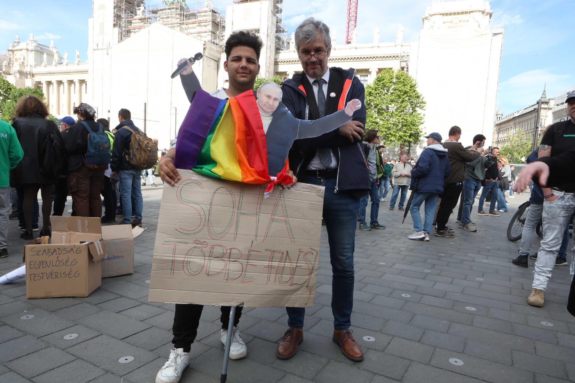"biztosak lehettünk benne, hogy a technofasiszta Pride-törvény csak a kezdet volt. Ma van az a nap, amikor igazán megijed a hatalom.”