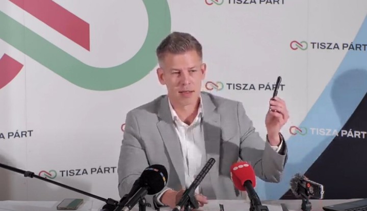 Magyar Péter megismételte, hogy illegálisan lehallgatják őket, majd bemutatta azt a 9 napig elemről működő kémtollat, amit a legnagyobb irodájukban, egy kábelcsatornában találtak meg. Megjegyezte: ebbe minden uniós országban belebukna a kormány.