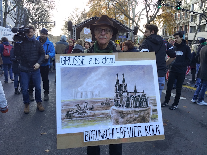 Míg otthon elsősorban fiatalok vesznek részt a klímasztrájkban, Kölnben szép számmal voltak idősebbek is. Egy minden bizonnyal már 70 fölött járó tüntető barnaszén-bányászat elleni transzparensével a nyakában érkezett.