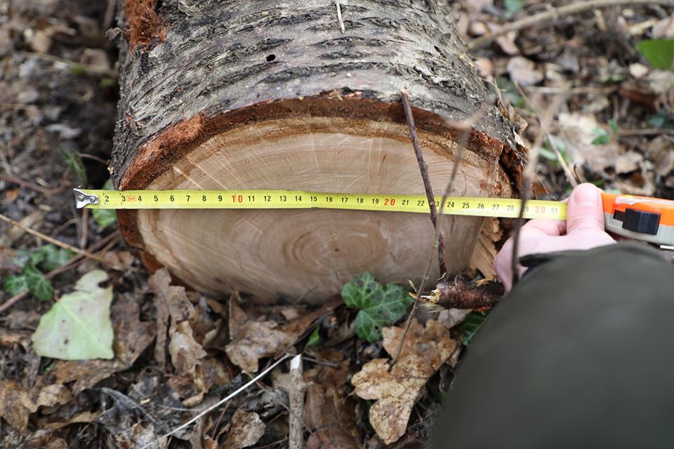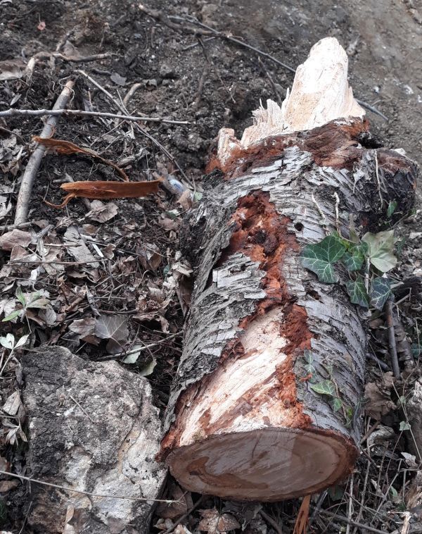 Saját verziót küldtek ahhoz a Facebookon közölt védegyletes fotóhoz is, amely egy nagyjából 30 centi átmérőjű, egészségesnek látszó kivágott fatörzset ábrázol. A Hegyvidéki Önkormányzat fényképén szintén egy fatörzs látszik, csak nagyobb terjedelemben – nem csak egy alsó átvágott rész van a képen, hanem a törzs másik, szálasan tört vége is. A XII. kerület sajtósa szerint a kép azt bizonyítja, hogy korhadt fát vágtak ki, és mindez a tiltakozók fotóján is látszana, ha az egészségesnek mutatott fa másik felét is fényképezték volna. A fa korhadtságát szerintük kertészmérnöki szakvéleménnyel is igazolni tudják.