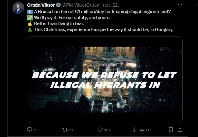 Magyarország napi egymillió eurót fizet Brüsszelnek azért, mert távol tartja az illegális migránsokat. Micsoda üzlet! – írja a kimondottan konzervatív londoni Telegraph, és felhívja a figyelmet arra, hogy egy friss magyar turisztikai videó erényt kovácsol az uniós bírságból, azt állítva, hogy ez Európa legbiztonságosabb úticéljává tette Orbán Viktor országát. Boldog karácsonyt – zárul a 48 másodperces országimázs-építő, turistacsalogatónak szánt, angol nyelvű klip.