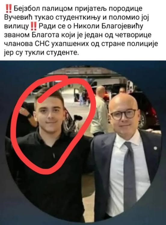 „Nem is tagadhatták le az összefüggést a verőlegények és a Szerb Haladó Párt között, hiszen a párt irodájából jöttek ki, és támadtak az egyetemistákra, akik hétvégi újvidéki nagy tüntetésre szóló felhívásokat ragasztgattak ki épp a falakra. Persze az nagyon leleplező, hogy van egy közös fotója a volt, most már a technikai kormányt irányító miniszterelnöknek ezzel a fickóval” – mondta az Esti gyors szerdai adásában Pressburger Csaba vajdasági magyar újságíró. Az Észverés közéleti kijózanító podcast szerkesztő-műsorvezetője hozzátette, ez nem meglepő, eddig is voltak hasonló verőlegényei a pártnak, akik provokátorként, támadókként jelentek meg a tüntetéseken. „Ez a szélesebb nyilvánosság előtt eddigsem volt titok, de azt gondolom, hogy most egyértelműen lelepleződtek.”