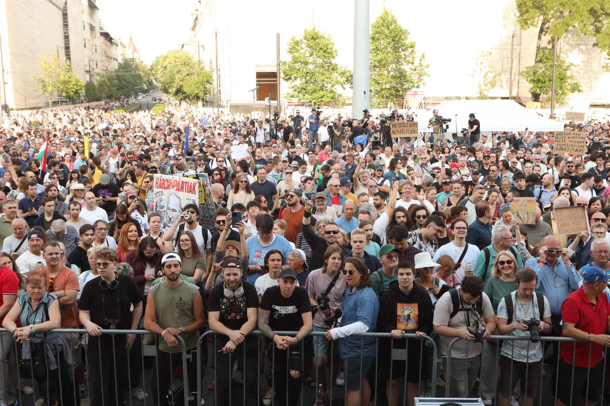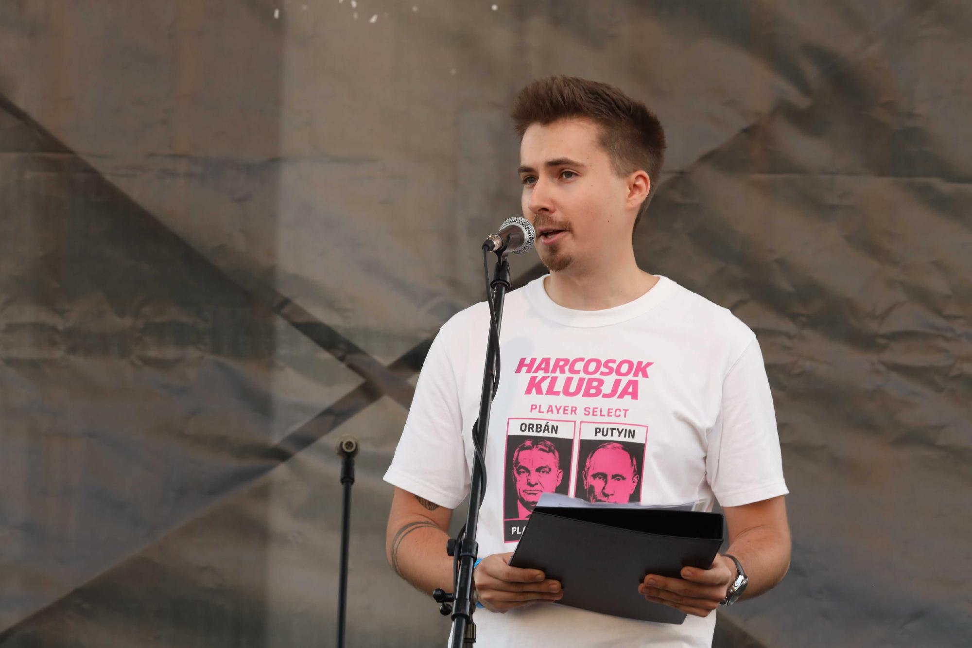 Stumpf András, a Válasz Online újságírója azt mondta, nem tud legyinteni a törvényre, csak mert elnapolták. A hetilapjukat 7 éve végezték ki, a mostani ismerős érzés. Felhívta a figyelmet, alkotmányos kötelesség fellépni az önkénnyel szemben. Megjegyezte azt is, az, hogy ennyien vannak a téren jelzi majd az utókornak, hogy sokan voltak, akik nem éltették az agresszort, sem a moszkvait, sem a hazait.