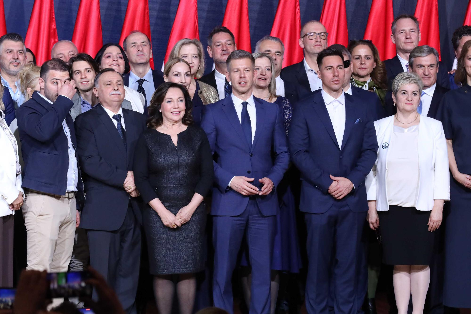 A képviselőjelöltek és vezető tiszások beszédeit követő Magyar Péter-felszólalás után elhangzott a Himnusz, majd a Tisza elnöke színpadra hívta a 106 jelöltjüket, hogy közös képet készítsenek.
