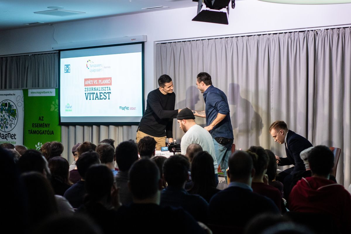 Jó hangulatban vitatkozott egymással az újságírásról Apáti Bence, a Magyar Nemzet publicistája és Plankó Gergő, a 444.hu újságírója egy alapítvány hagyományteremtőnek szánt eseményen. Végre ütközhettek az érvek, amik a fideszes és a kormányfüggetlen médiában rendszerint megjelennek az újságírás szerepéről és helyes felfogásáról – igazán kínos helyzetbe azonban csak Plankó Gergő tudta hozni Apáti Bencét. Az eseményről Galavits Patrik tudósított.