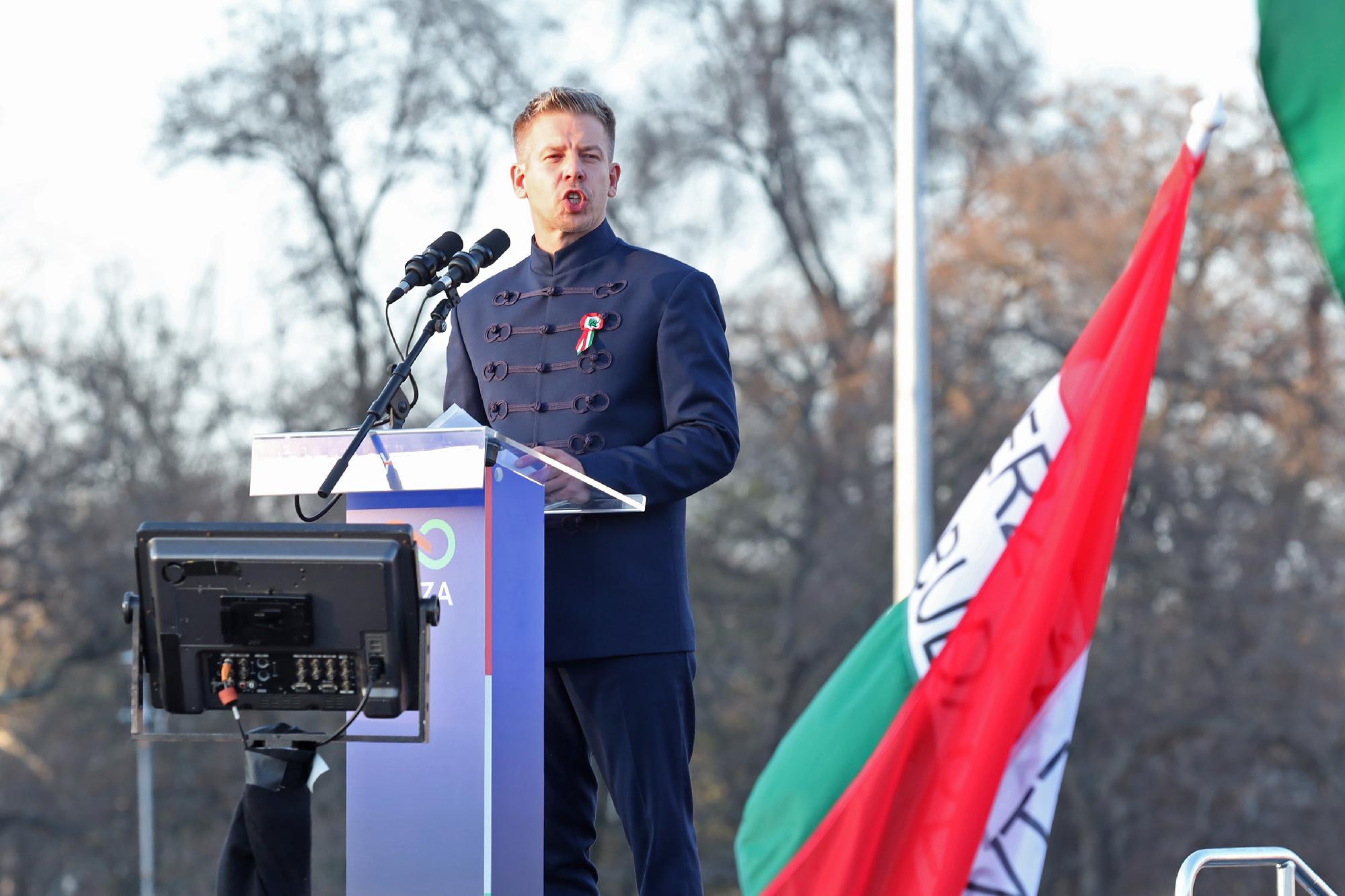 A beszédben felidézte a magyar történelem forradalmait is. „A felkeléseket ugyan leverték, de a magyarokat megtörni nem tudták. Az Orbán-kormány sem fog sikerrel járni, hiába hív be a wannabe császár KGB-ügynököket” – mondta. Hozzátette: április 12-én „olyan győzelmet fog aratni a Tisza, hogy nemcsak a Holdról, hanem a Kremlből is látni fogják”.