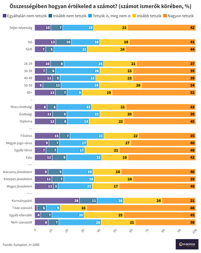 A szám megítélése pozitívnak mondható a teljes 16 év feletti népesség körében, a számot ismerők 41%-ának nagyon és egy további 21%-nak inkább tetszik, míg mindössze 27% fogalmazott meg inkább, vagy nagyon negatív véleményt a számról. Noha nem túl meglepő módon a Tisza-szavazók és az egyéb ellenzéki szavazók körében jóval magasabb a szám népszerűsége, még a kormánypártiak táborában is többen vannak a számról pozitív (45%), mint negatív (39%) értékelést megjelölők.