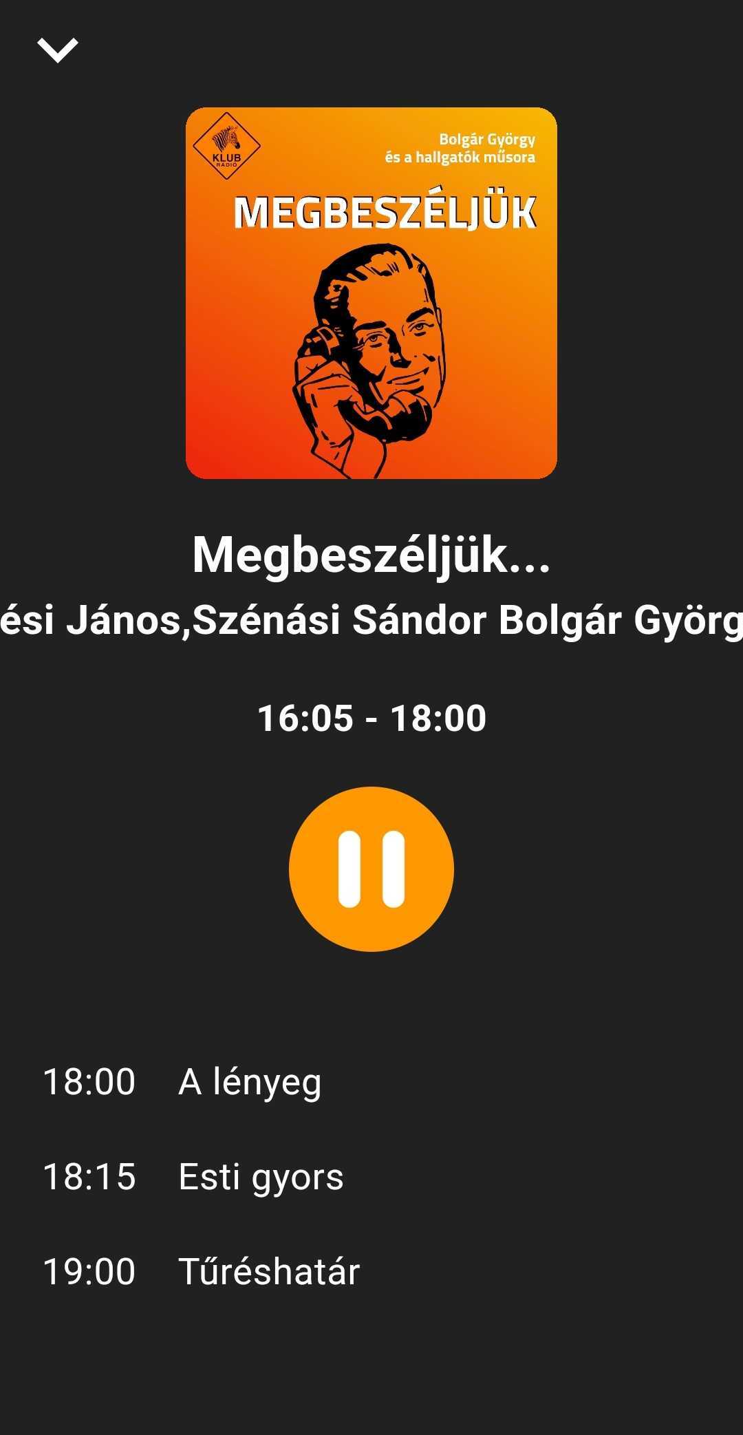A lejátszó sötét sávjára koppintva az éppen hangzó műsor részeleteit, valamint a soron következő műsorokat tekinthetik meg.
