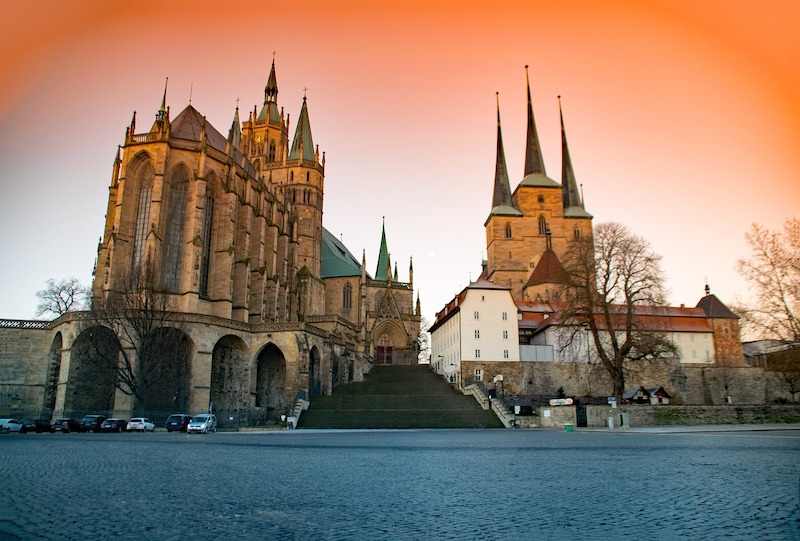 Erfurt azon kevés városok egyike, amelyik kiállta ezeket a próbákat, így most Európa egyik legszebb történelmi magjával büszkélkedhet. Idehaza egy megmaradt középkori ablakkerettől is lázba jövök, ott viszont tele van a város reneszánsz lakóházakkal. Húsz történelmi templommal és kolostorral büszkélkedhet, melyek többsége gótikus stílusú. Az utóbbiak közül a két leghíresebb a lenyűgöző Szűz Mária-katedrális és mellette a Szent Szeverin-templom. Egyedülálló a világon, hogy két ilyen hatalmas gótikus templomot ennyire közel építsenek egymáshoz: alig néhány lépésnyire magasodnak egymástól a Domplatzon, a templomdomb tetején. Hihetetlen látvány, de a város valódi szenzációja mégis a Krämerbrücke, a világ leghosszabb és legrégebb óta lakott középkori lakóhídja.