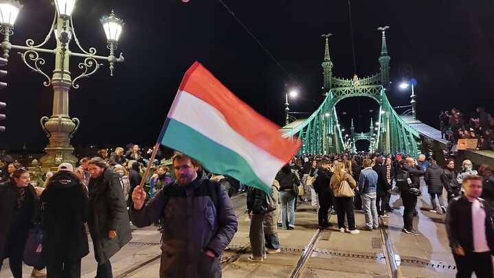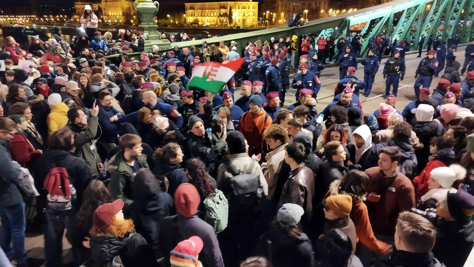 A technofasizmus ellen tüntettek az Erzsébet hídon, ahonnan sokan a Szabadság hídra mentek, aztán a Petőfi híd felé, amit végül nem sikerült elfoglalni. A Szabadság hídon tíz óra körül újraindult s forgalom, az Erzsébet híd hajnali 4-ig a tüntetőké marad. Mátyus László képriportja.