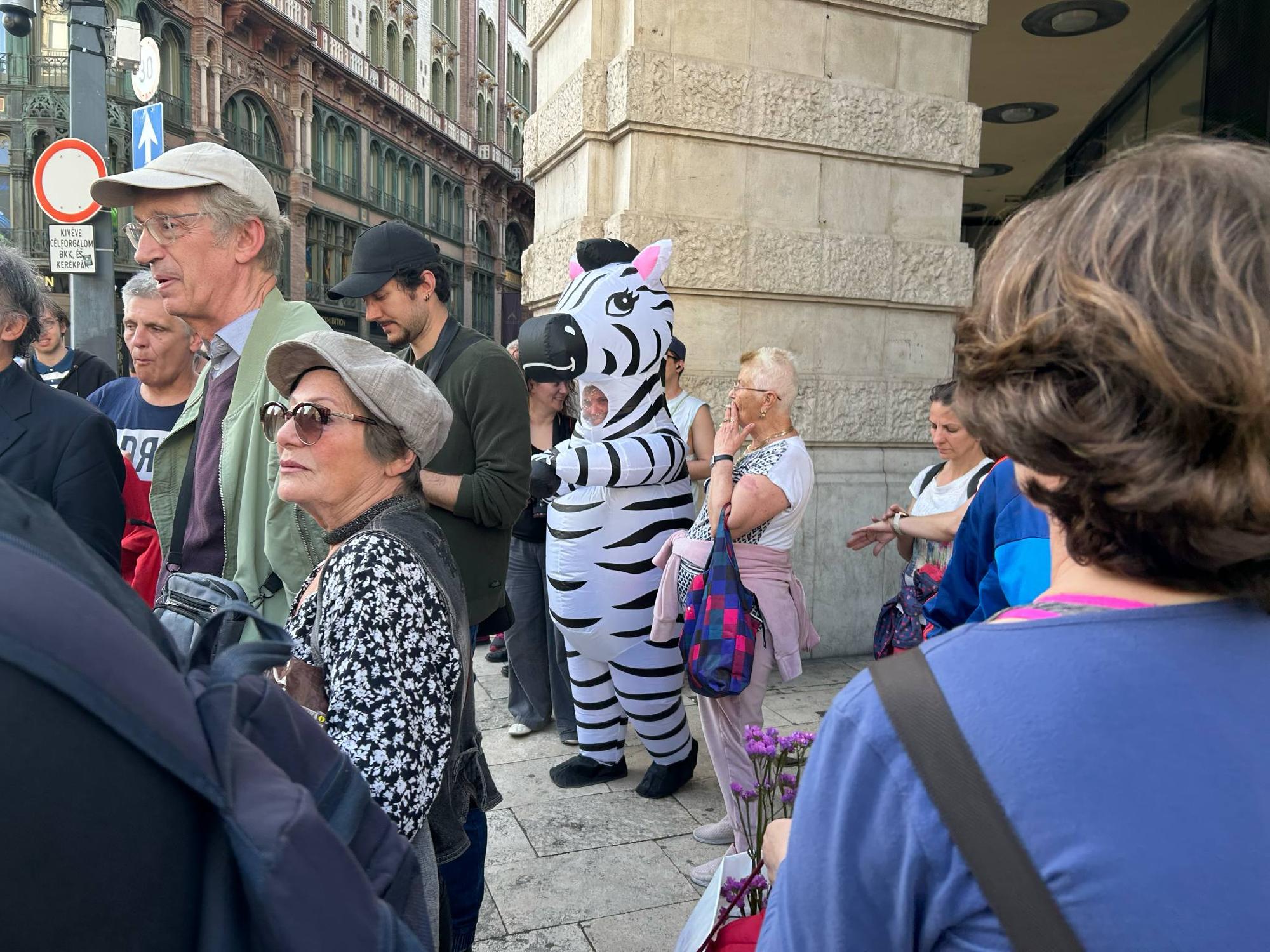 Mindeközben a Ferenciek terén maradt egy kisebb csoport, velük van Hadházy is.