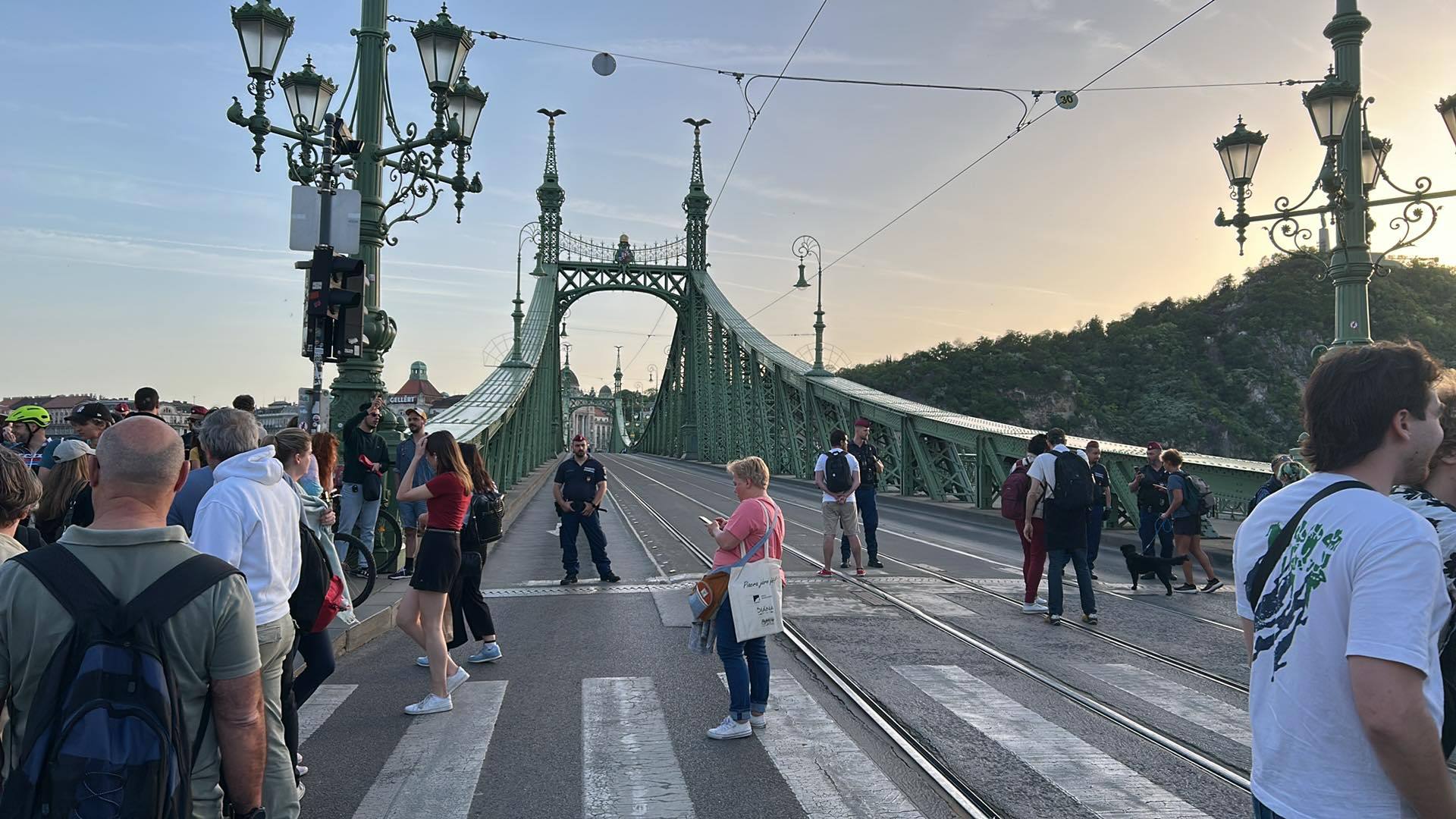 Este 7-re mintegy 200-250 tüntető, köztük a Momentum politikusai a Szabadság hídra vonultak, így ott a villamosközlekedés leállt. Tudósítónk arról számolt be, hogy a hídon tartózkodókat megpróbálják hermetikusan elzárni mindkét oldalról, a rendőrök igyekeznek leterelni az embereket. A tiltakozók közül sokan leültek a hídon, egyfajta élőláncot alkotnak a budai oldalhoz közelebb eső részen.
