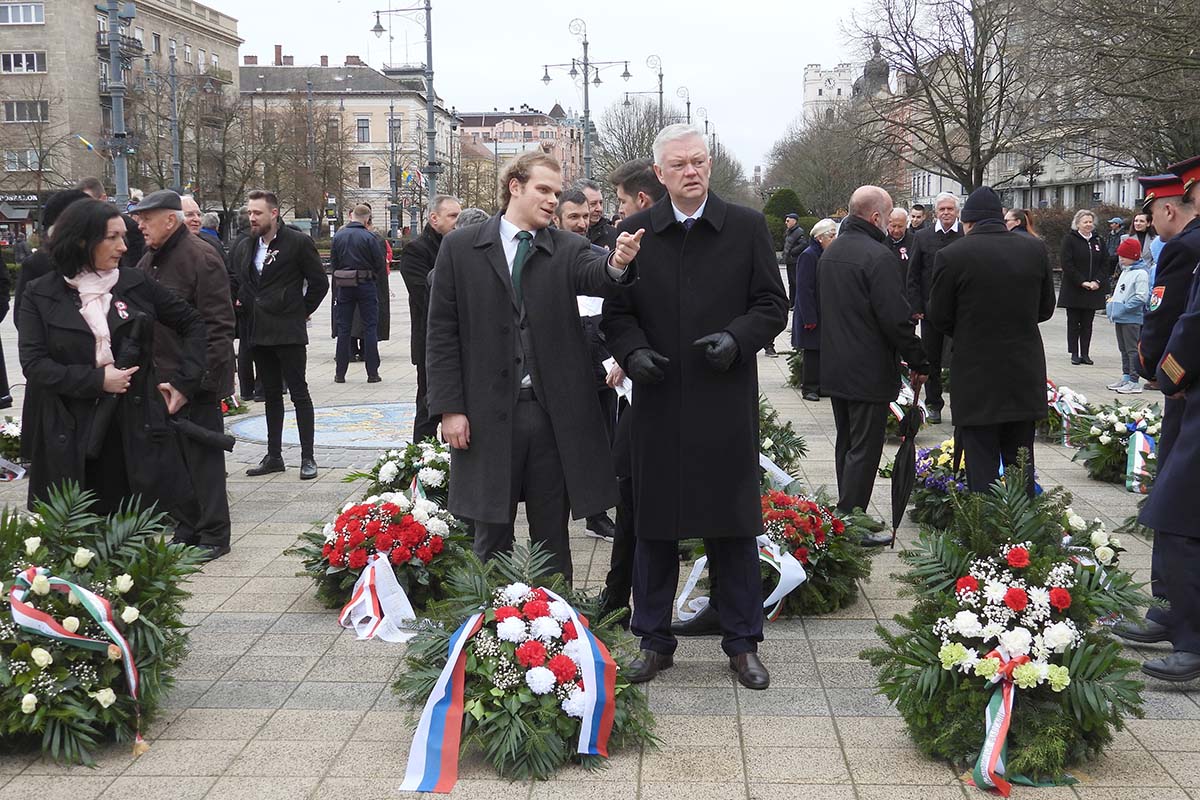 Országos sajtóvisszhangja volt a Debreciner egyik fotójának, ami március 15-én készült Debrecen önkormányzatának hivatalos ünnepi megemlékezésén. Pedig az itteni orosz főkonzul évek óta rendszeres résztvevője a debreceni városi ünnepségeknek március 15-én, augusztus 20-án és még október 23-án is. Mindeddig az oroszok részvételét és koszorúzásaikat nem kísérte tömeges felháborodás. Most igen. Debrecen önkormányzata nem adta indokát annak, hogy az orosz főkonzulnak miért jutott idén ilyen előkelő hely, megelőzve a magyar fegyveres testületek itteni vezetőit, de még a tiszántúli református püspököt is. Részletek a Debrecineren.