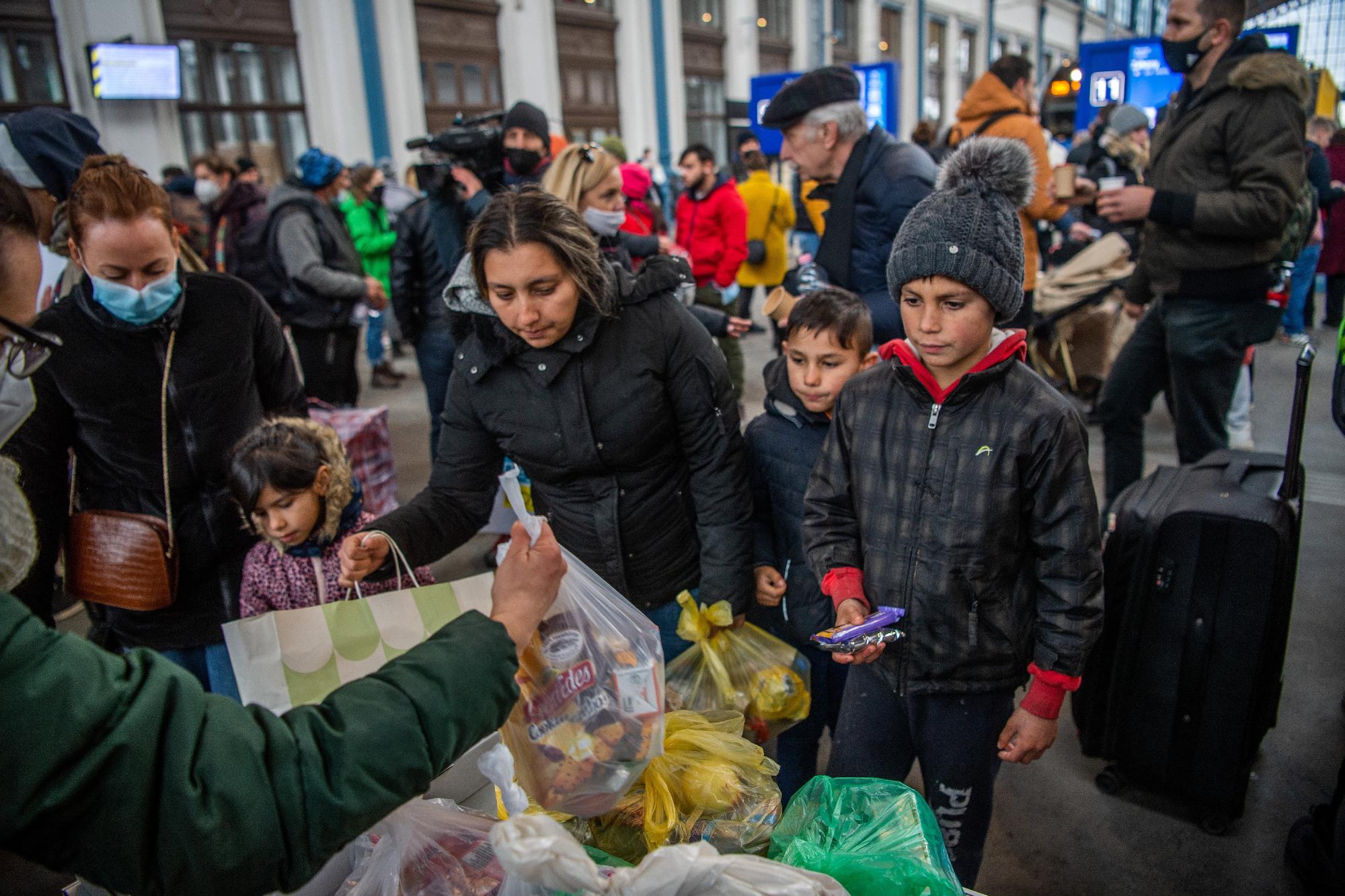Budapest, 2022. február 28. A háború miatt Ukrajnából menekülő emberek Budapesten, a Nyugati pályaudvaron 2022. február 28-án. MTI/Balogh ZoltánA lapszemlét a fenti lejátszóra kattintva hallgathatják meg.