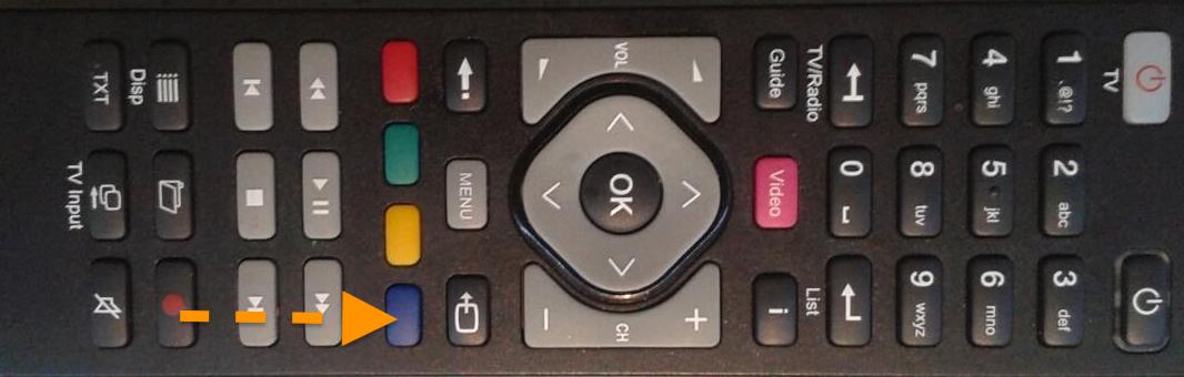 És ugye azért egy olyan tv-készülék sem árt, amin azért menni fog mindez. Például Kékes tévén ez nem fog működni, de akár egy egyszerűbb lapostévé is megteszi már. Ezt kell majd összekötni azzal a set-top box-szal, amit kap, ehhez van egy távirányító, és azt használva tudja megkeresni a Klubrádiót a tévékészüléken. Keresse a kék gombot!
