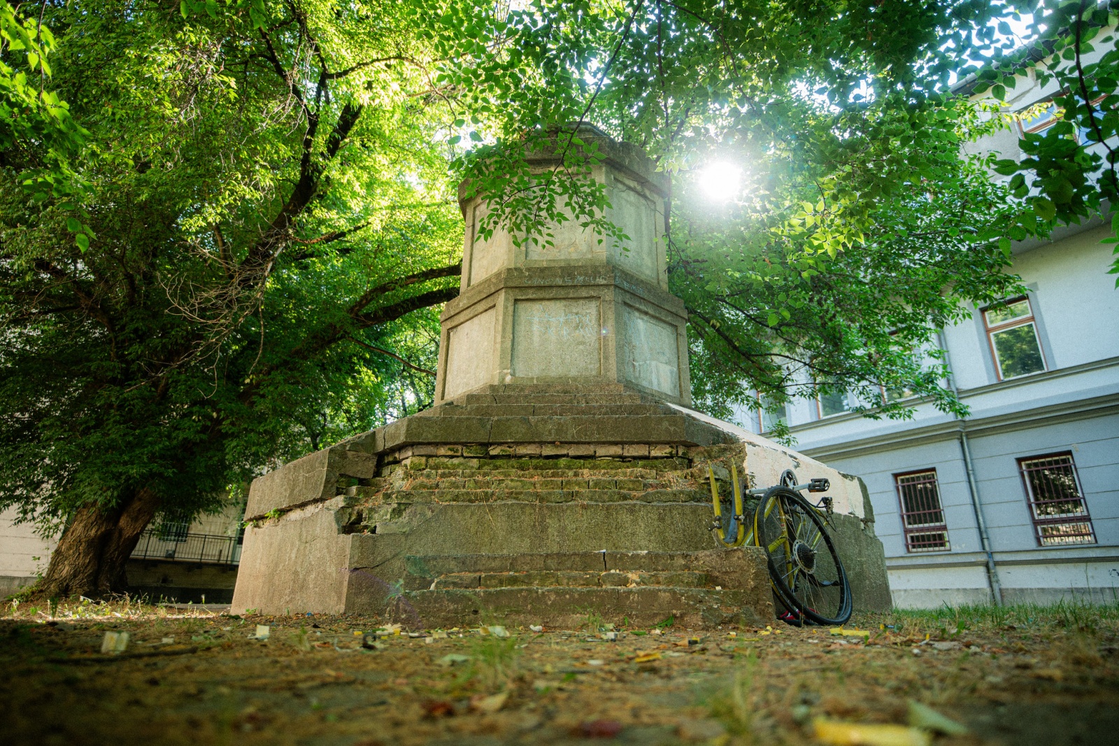 Szegeder: Egy romos bérház udvarán áll a megcsonkított világháborús emlékoszlop