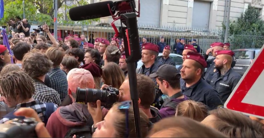 Nekifeszültek a tüntetők a rendőröknek a Fidesz-székháznál