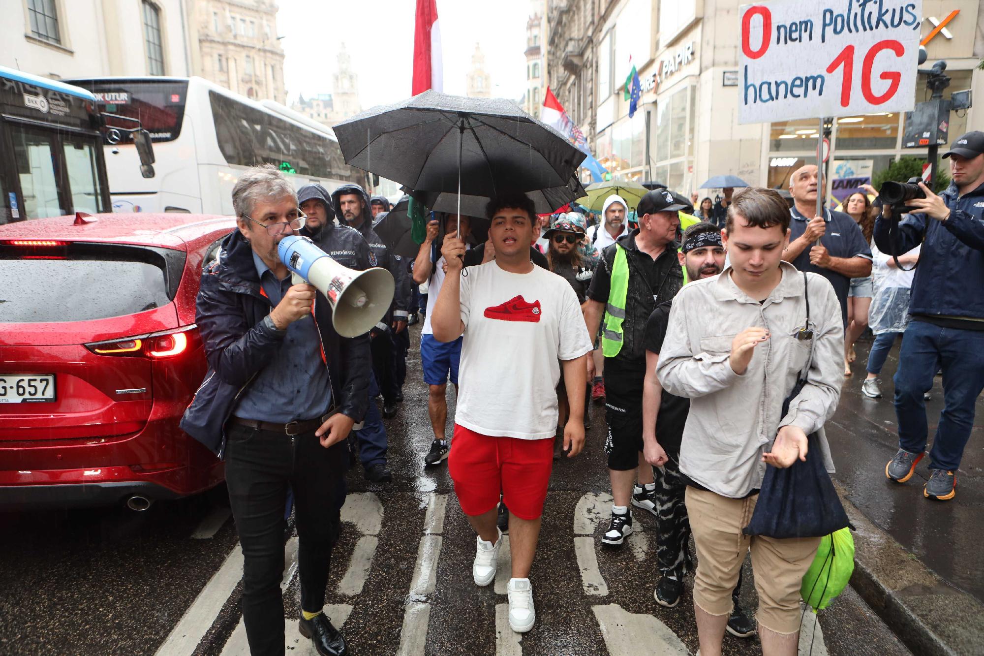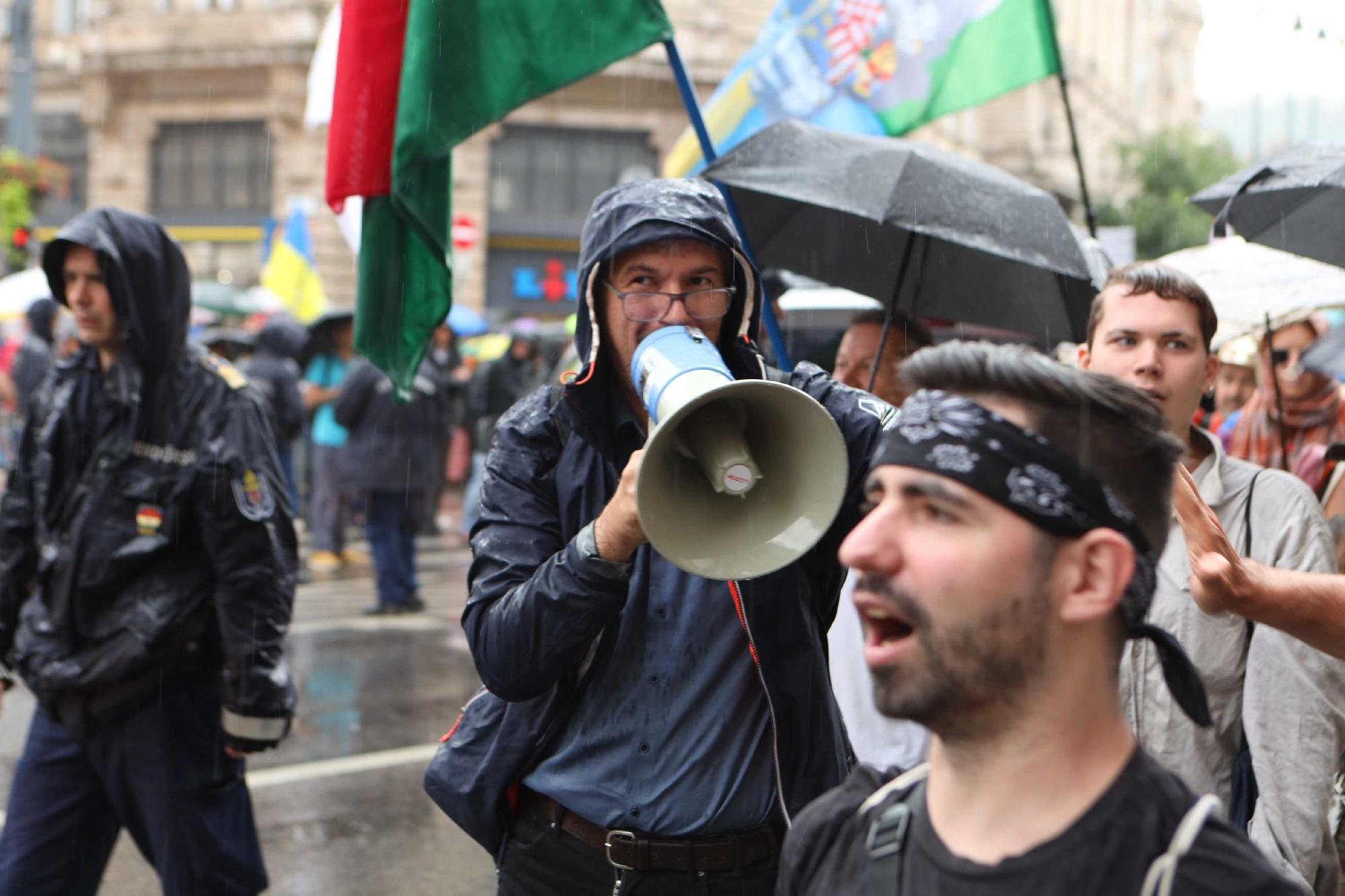 Esőben is kitartott a keménymag a 17. Hadházy-féle tüntetésen. Bő kétszáz tiltakozó vonult a Ferenciek teréről a budai várba.