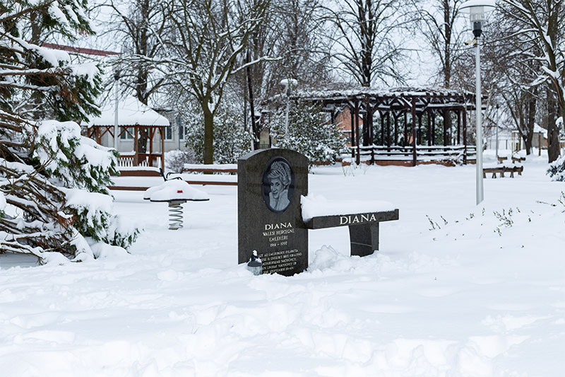 Örményes, az alig ezer fős Jász-Nagykun-Szolnok megyei falu a helyszíne Diana hercegné egyetlen hivatalos magyarországi emlékhelyének, amelyet 2017-ben, halálának huszadik évfordulóján avattak fel a Szabadság téren. A márványpad létrejötte egy helyi némettanár, Kovács Beáta személyes gyászából és több mint kétezer darabos Diana-gyűjteményéből nőtt ki az önkormányzat és helyi vállalkozók összefogásával. A padot Papp Norbert tervezte, Oláh László készítette, a melankolikus portré Ronda A. West munkája. Az emlékhely mára zarándokhellyé vált, virágokkal, mécsesekkel, és különös brit színfoltot jelent az Alföld közepén, megőrizve a hercegné humanitárius örökségének emlékét.