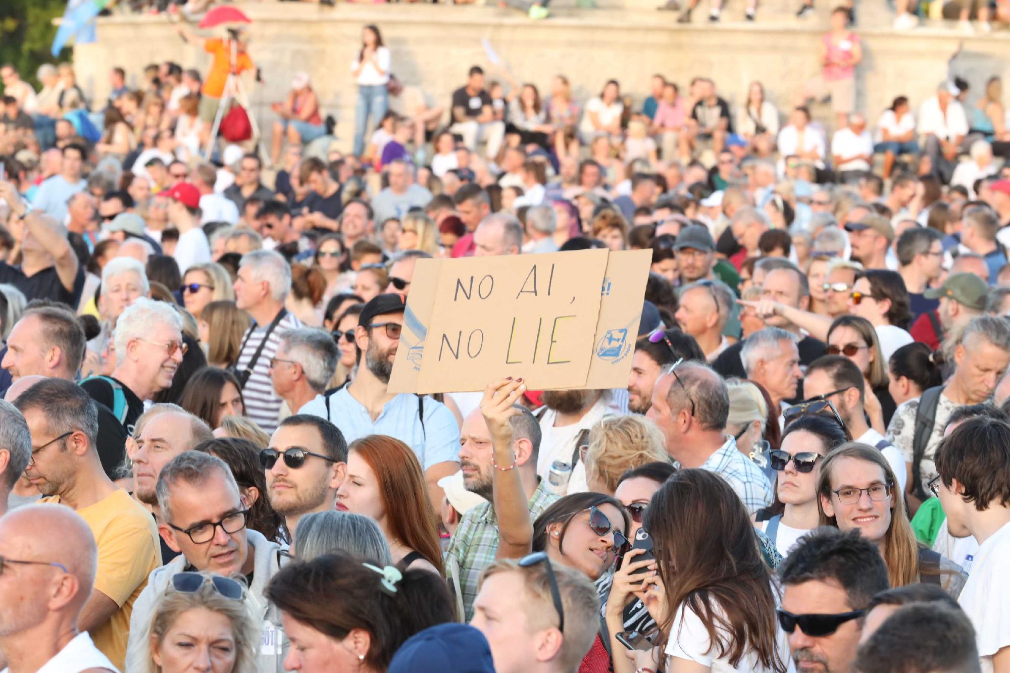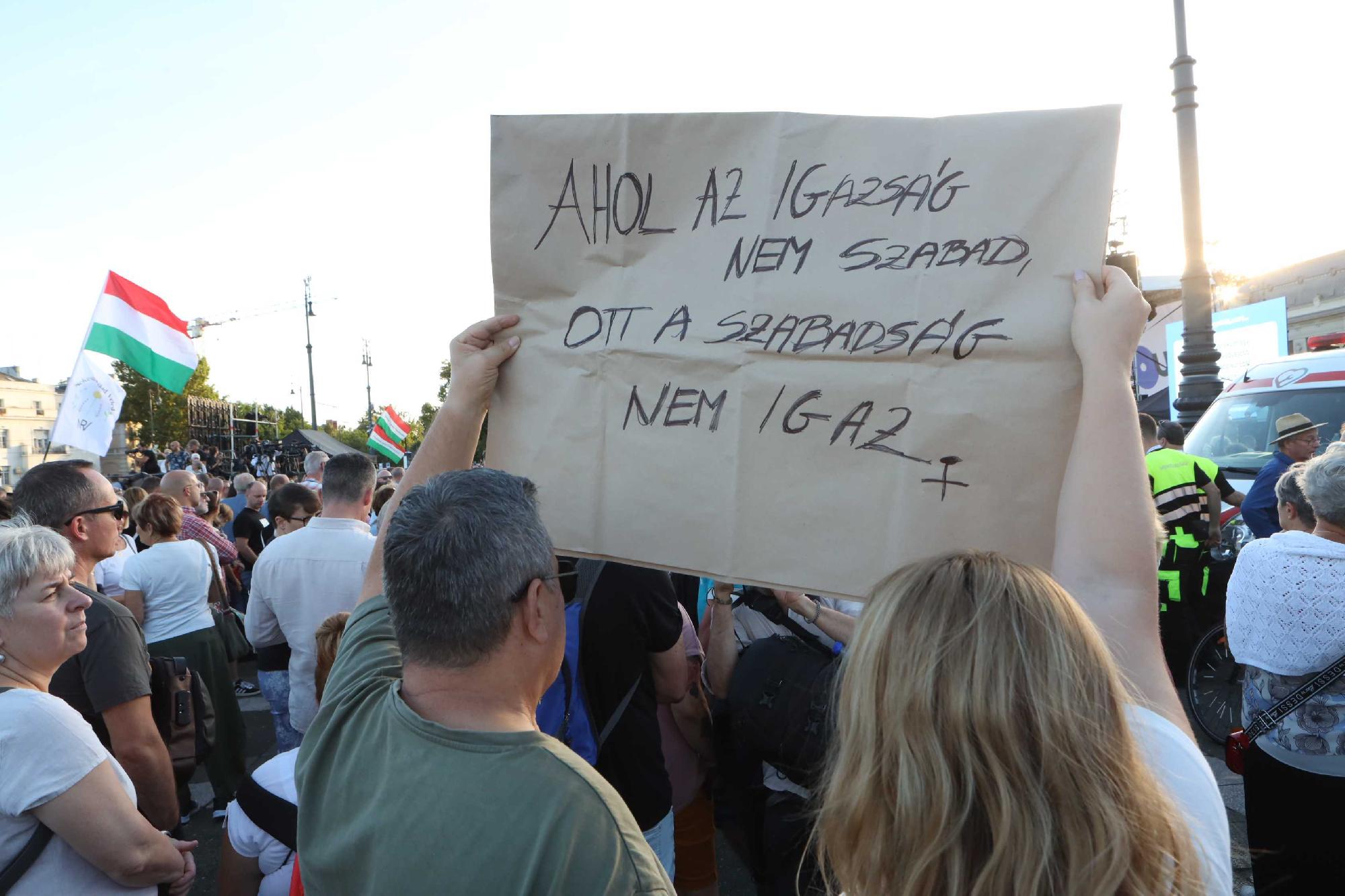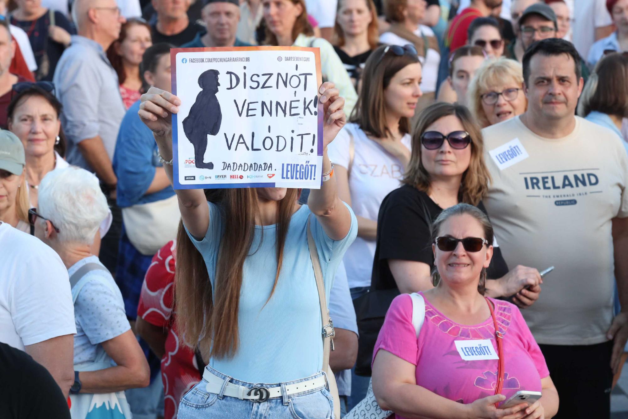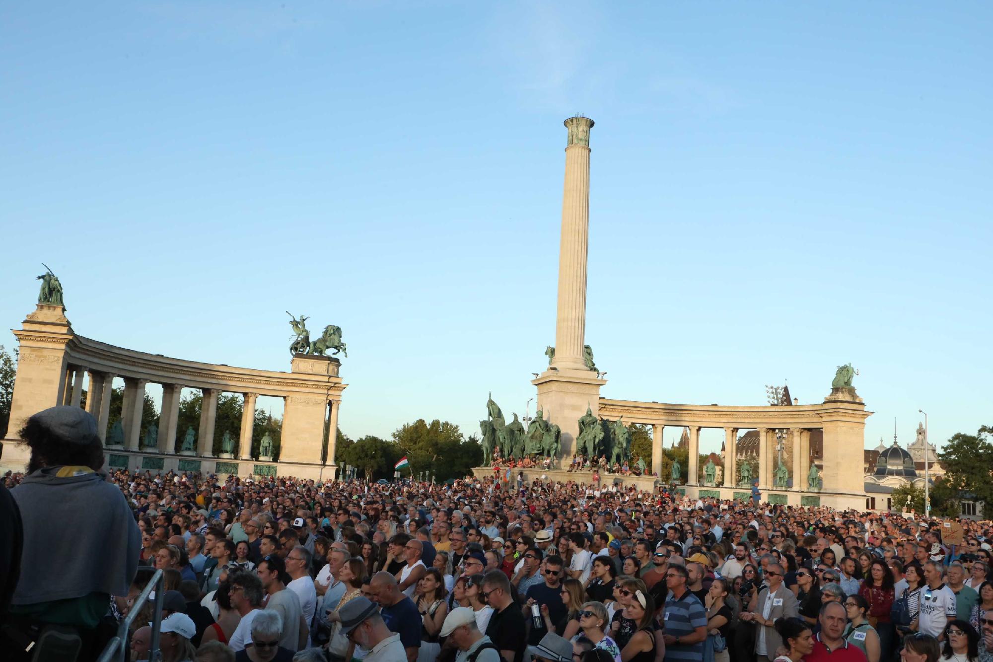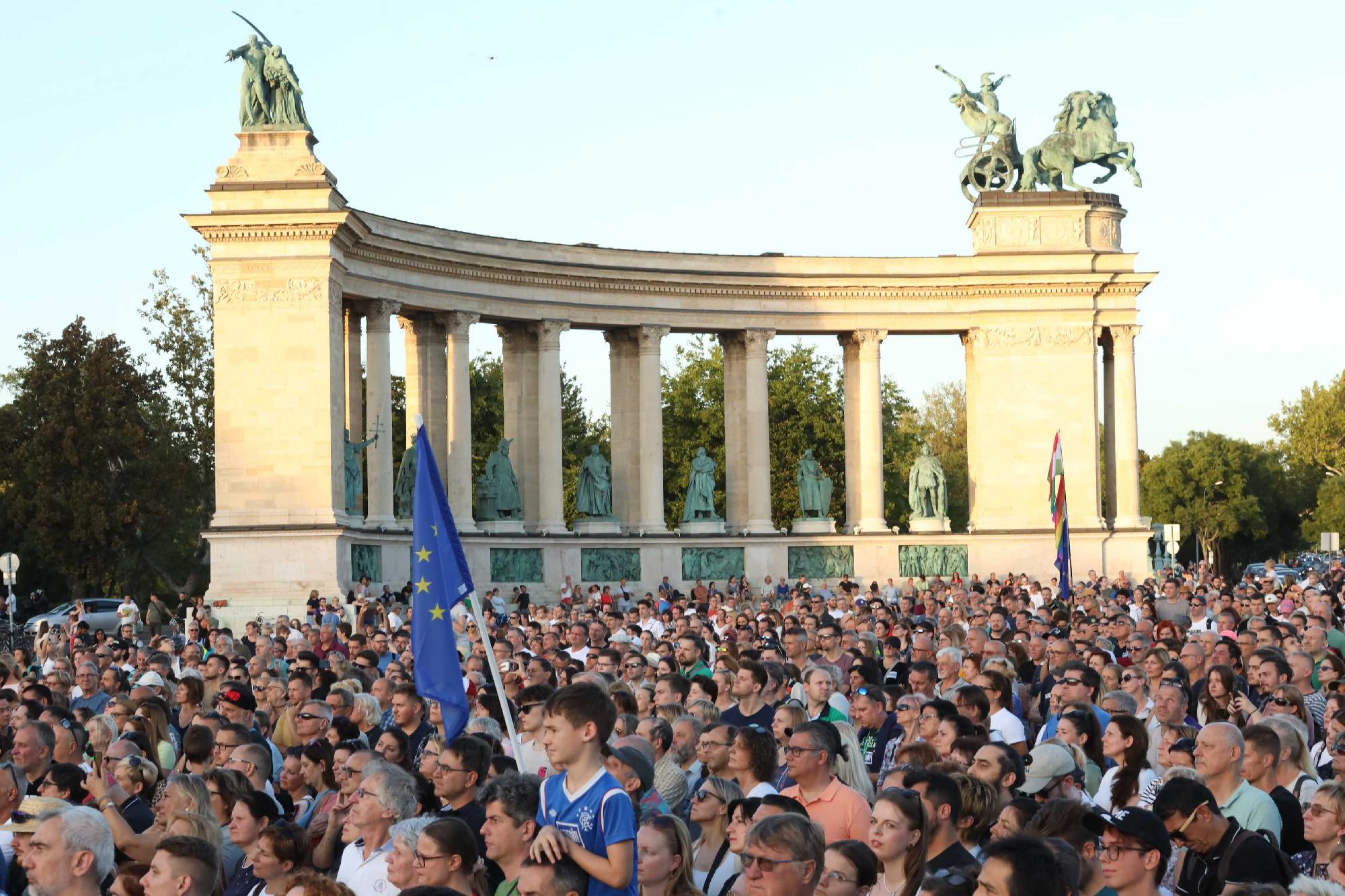 Több ezren tüntettek a Hősök terén a tiszta közbeszédért