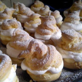 A krémhez vegyünk 6 darab tojást, 1 darab vaníliarúd kikapart magjait, 3 deciliter habtejszínt, 4 evőkanál lisztet, 6 evőkanál cukrot, 4 deciliter tejet. A tojásokat válasszuk szét. A tojásfehérjét vízgőz felett a cukor felével verjük fel. A lisztet kevés tejjel és a tojássárgájával keverjük habosra. A maradék tejet a félbevágott, kikapart vaníliarúddal forraljuk fel, majd csurgassuk bele a tojássárgás masszát és főzzük addig, amíg sűrű nem lesz. Ekkor adjuk csak hozzá a tojásfehérjét csak óvatosan, több részletben. A habtejszínt a cukor másik felével felverjük. A kihűlt fánkocskák kalapját vágjuk le, töltsük meg a vaníliás krémmel, és tegyünk rá tejszínhab bóbitát, majd kerüljön vissza a kalapocska.
