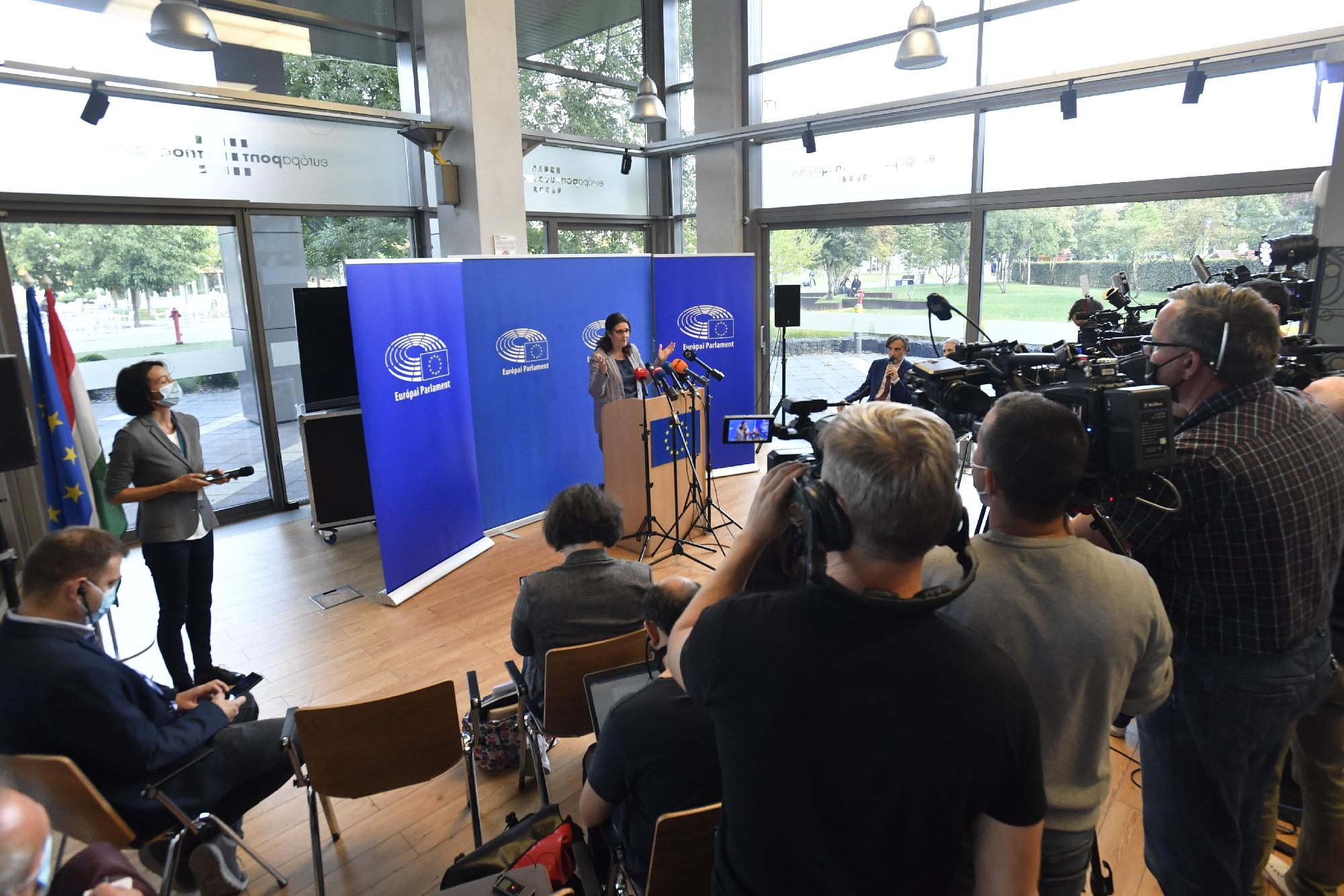Budapest, 2021. október 1. Gwendoline Delbos-Corfield francia európai parlamenti (EP) képviselő, a Zöldek/Európai Szabad Szövetség képviselőcsoport alelnöke, az EP Állampolgári Jogi, Bel- és Igazságügyi Bizottsága (LIBE) tényfeltáró delegációjának vezetője sajtótájékoztatót tart az EP budapesti irodájában 2021. október 1-jén. MTI/Máthé ZoltánMiképp hat az ítélet a 7-es cikkelyes eljárás folyamatára?