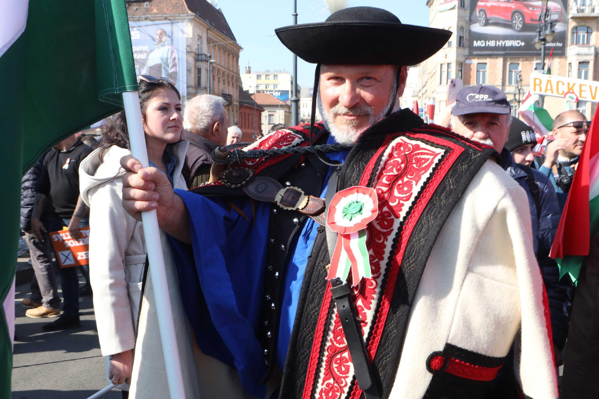 Délelőttől a kormánypárti Békemenet, kora délutántól a kormányellenes Rendszerváltó Nemzeti Menet résztvevői vonulnak a főváros utcáin. A békemenetesek kezdték a napot. Nézze meg a rendezvény indulásakor készített képeinket. Fotó: Mátyus László/Klubrádió.