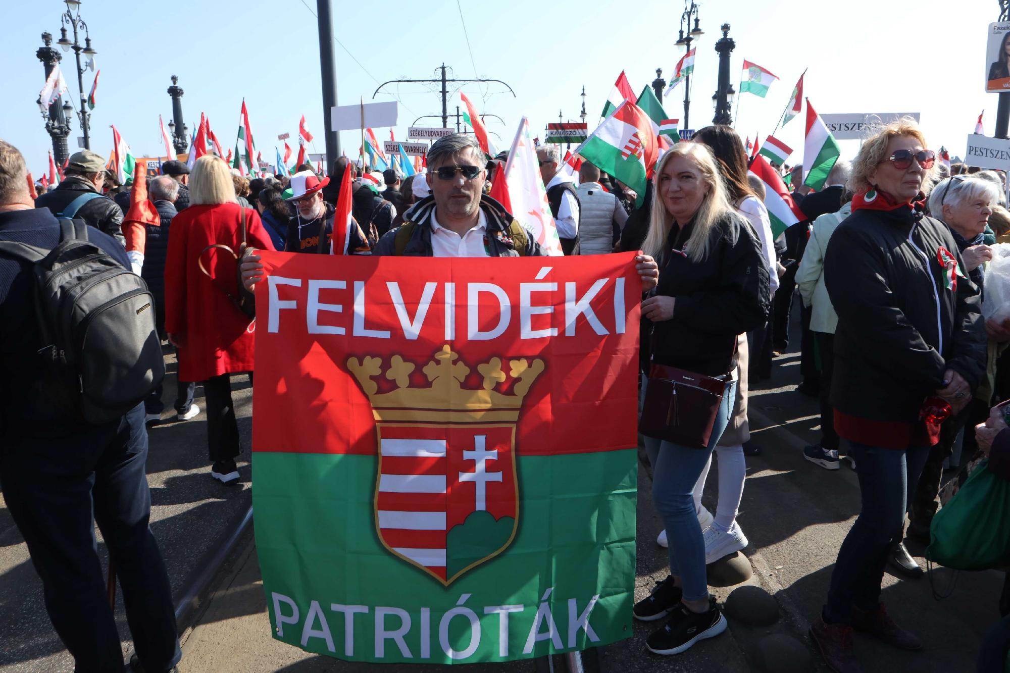 Délután a Fidesz fő kihívója, a Tisza Párt is felvonulást és gyűlést tart a fővárosban. A Rendszerváltó Nemzeti Menet nevű rendezvényen a Tisza elnöke, Magyar Péter mond beszédet. A Tisza menete a Deák térről indul délután 2 órakor és az Andrássy úton át a Hősök terére érkezik. A Kutyapárt a Szabadság hídon, a Mi Hazánk a Pilvax közben ünnepel.
