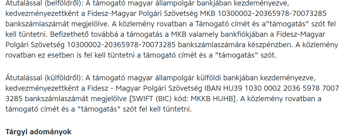 Eközben a Fidesz a honlapján nyíltan várja a belföldi mellett a külföldi felajánlásokat is az ott megadott számlaszámon, de az nem derül ki a Fidesznél, hogyan ellenőrzik a külföldi pénzeket - hívja fel a figyelmet a portál.