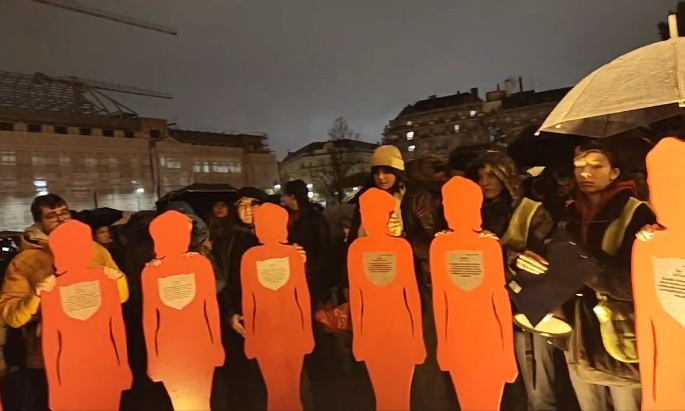 A NANE Egyesület demonstrációján az áldozatokat szimbolizáló női sziluetteket, az úgynevezett Néma Tanúkat vitték a résztvevők a Parlament elé.