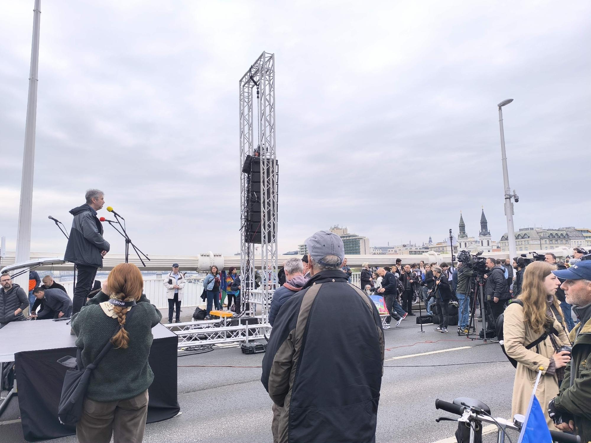 “Semmi, amit az országunk vezető kormányzásnak szoktak hívni az elmúlt 15 évben, nagyon nem oké. Ha a bíróságok elveszítik a függetlenségüket, senki sem védi meg a jogainkat a hatalom önkényétől. Ne menjünk el egymás gondjai mellett, ne csak akkor szólaljunk fel, ha minket bántanak” – üzente a gyülekezési jog korlátozása és a technofasizmus elleni ellen szervezett harmadik tüntetésen egybegyűlteknek az elsőként felszólaló Laczó Adrienn, lemondott bíró az Erzsébet hídon.