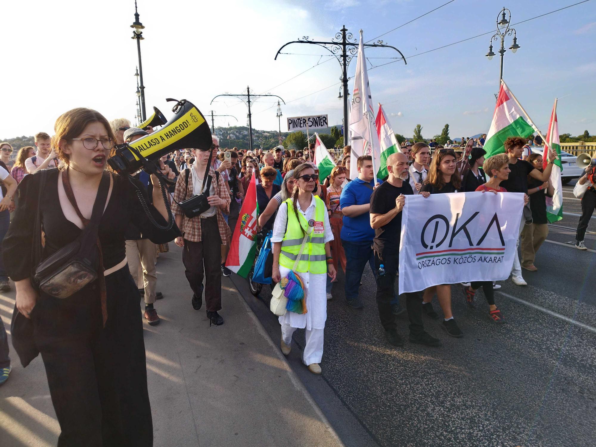 Az Országos Közös Akarat (OKA) néven összefogó több tucat szervezet a szeptember elsejei bemelegítő demonstráció után szeptember 15-re, a demokrácia nemzetközi napjára időzítette a 2023/2024-es tanév első igazi diáktüntetését, amelyre a résztvevők Budán, az Elvis Presley téren gyülekeztek.