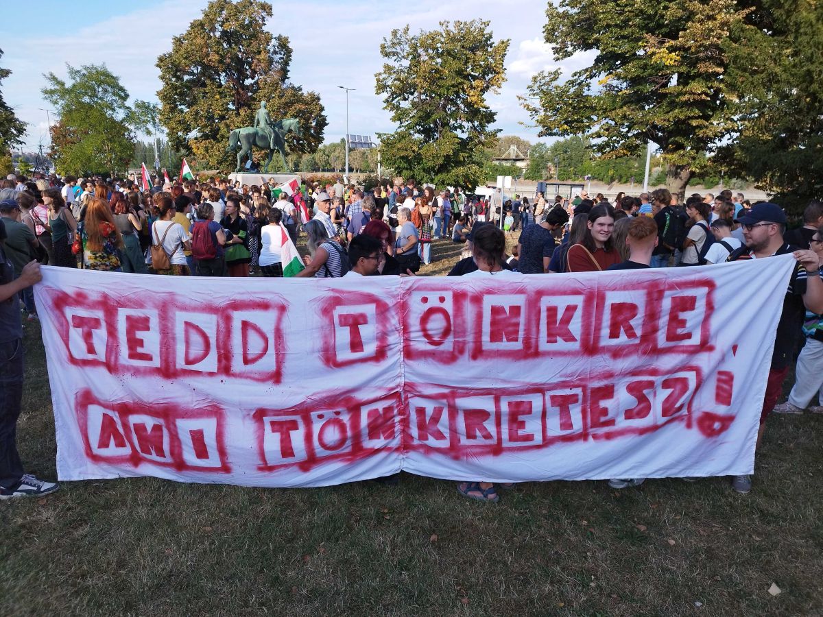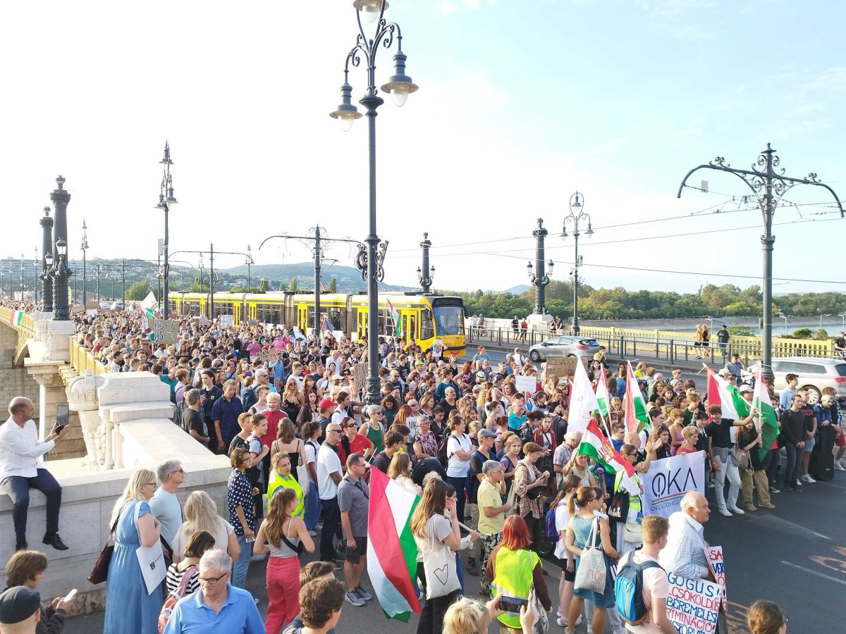 Ahogy a Telex írja, a tömeg eleje a Margit híd pesti oldalára az „Orbán-kormány? Nem jó kormány!” felkiáltással érkezett meg. Mikor a tüntetőket felvezető molinó már a Jászai Mari térhez volt közelebb, a tömeg vége még a híd budai oldalának elejénél tartott.