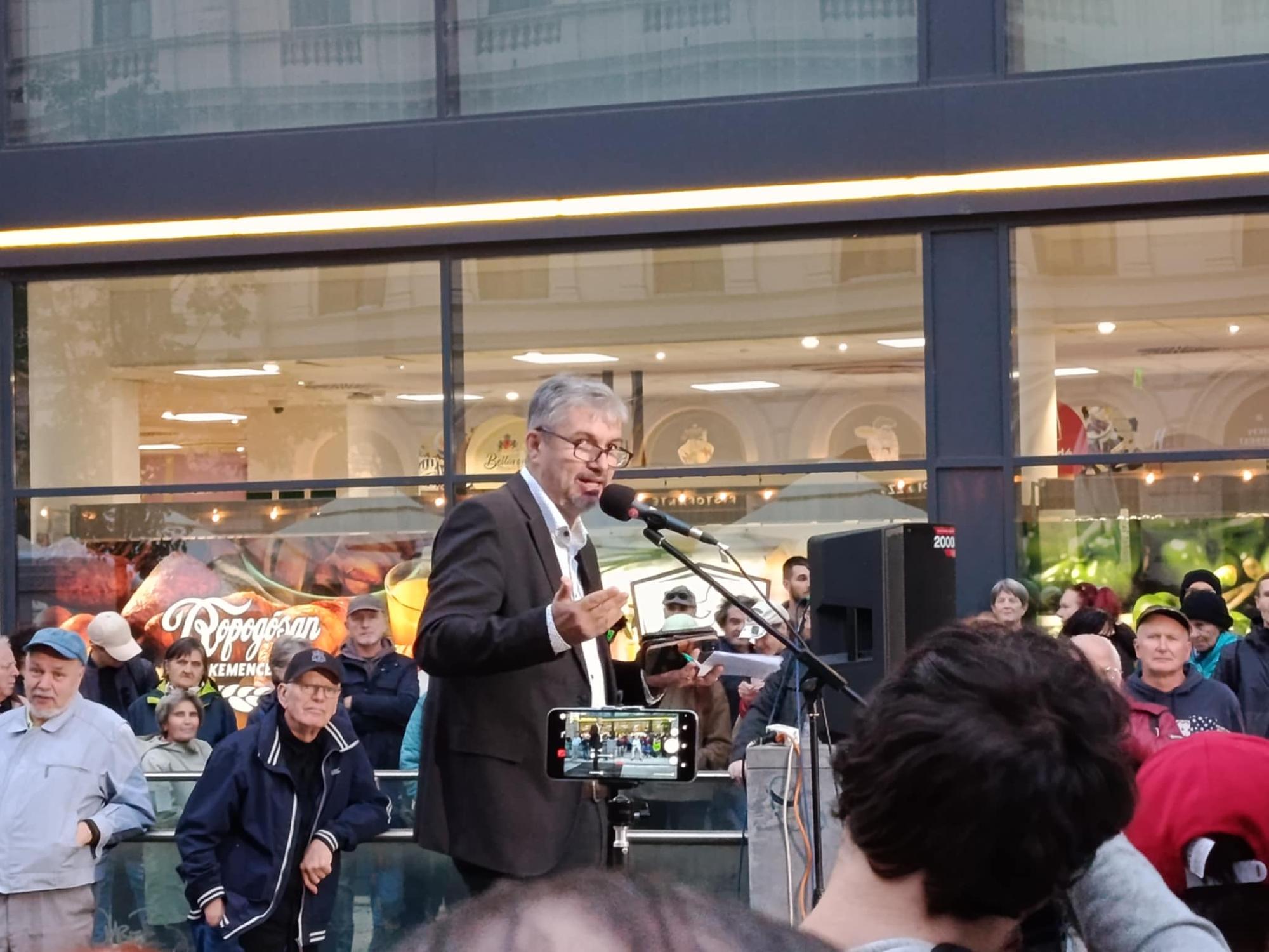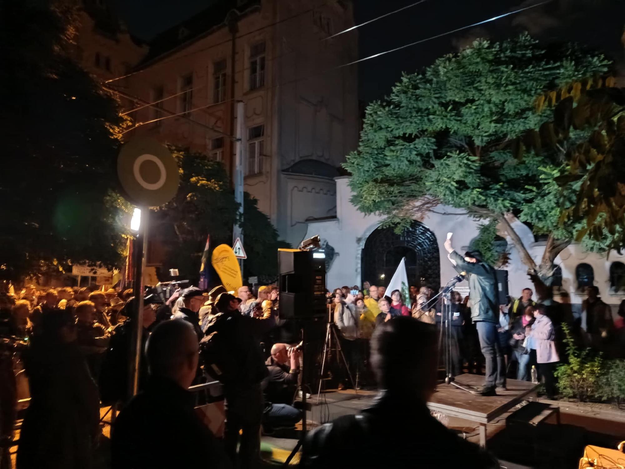 Hadházy a színpadon elmondta, a jövő héttől már a Ferenciek tere egy másik pontján gyülekeznek majd. "Őrizzük a parazsat" – mondta kitartó tiltakozóknak.