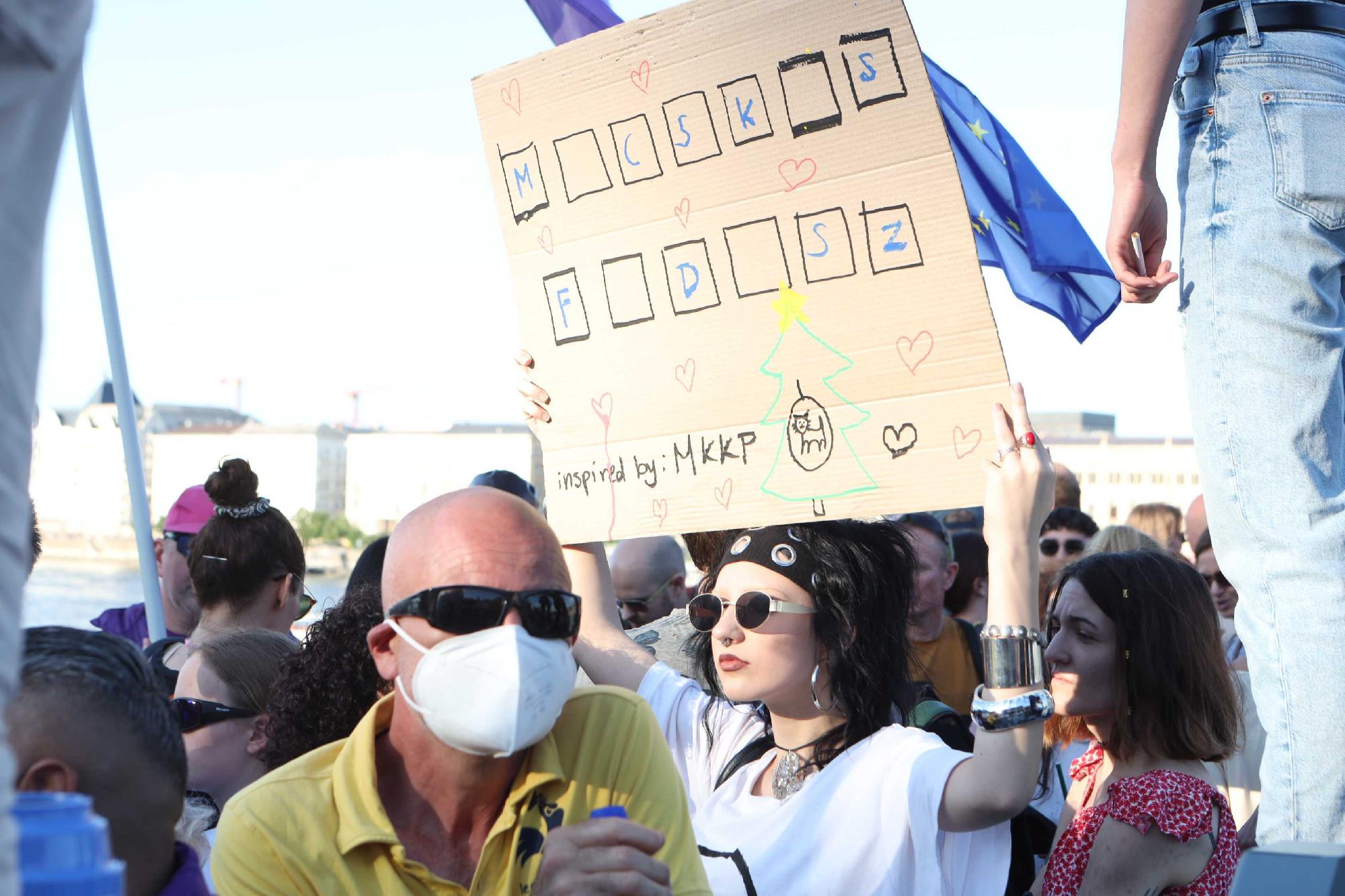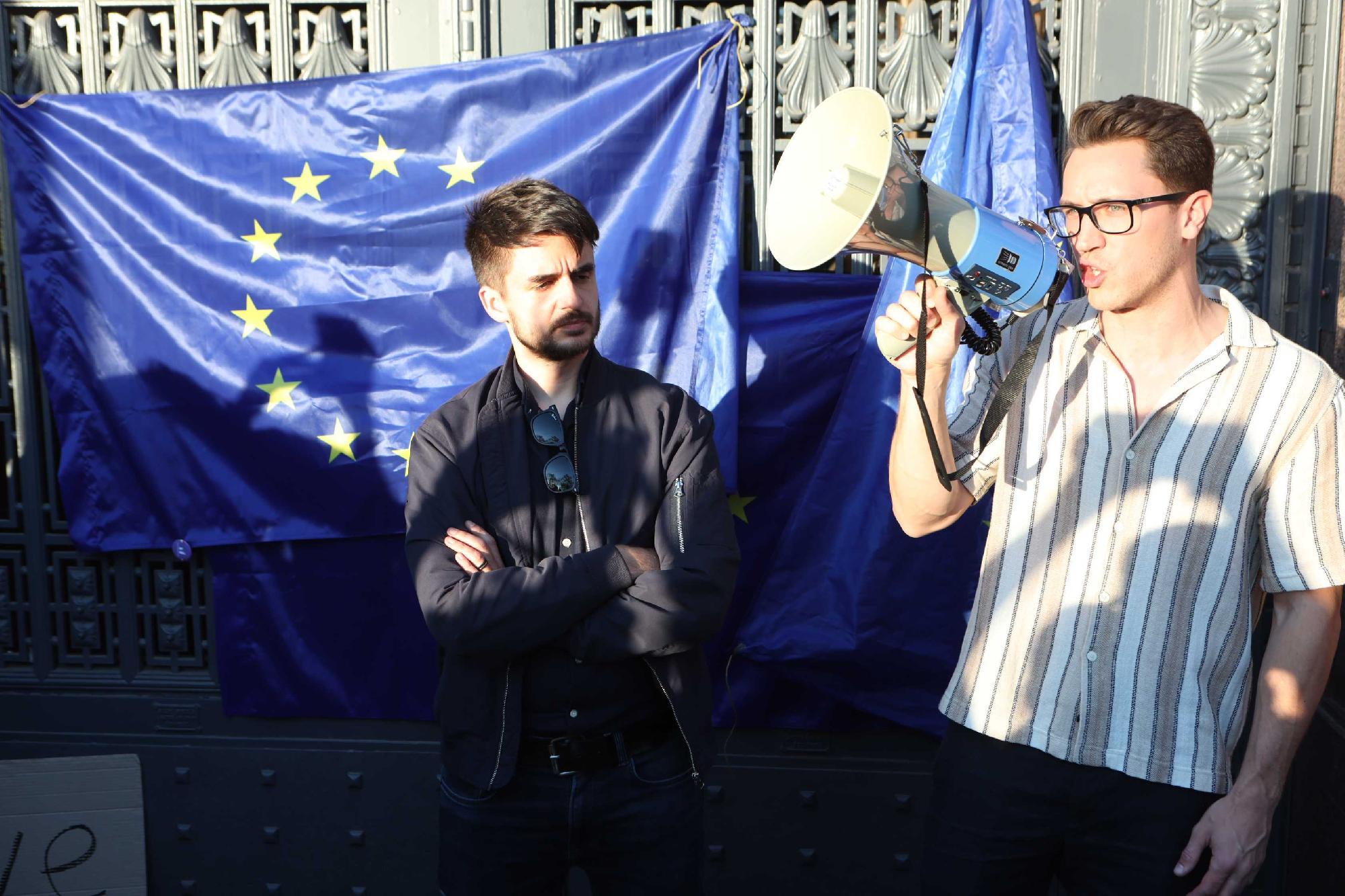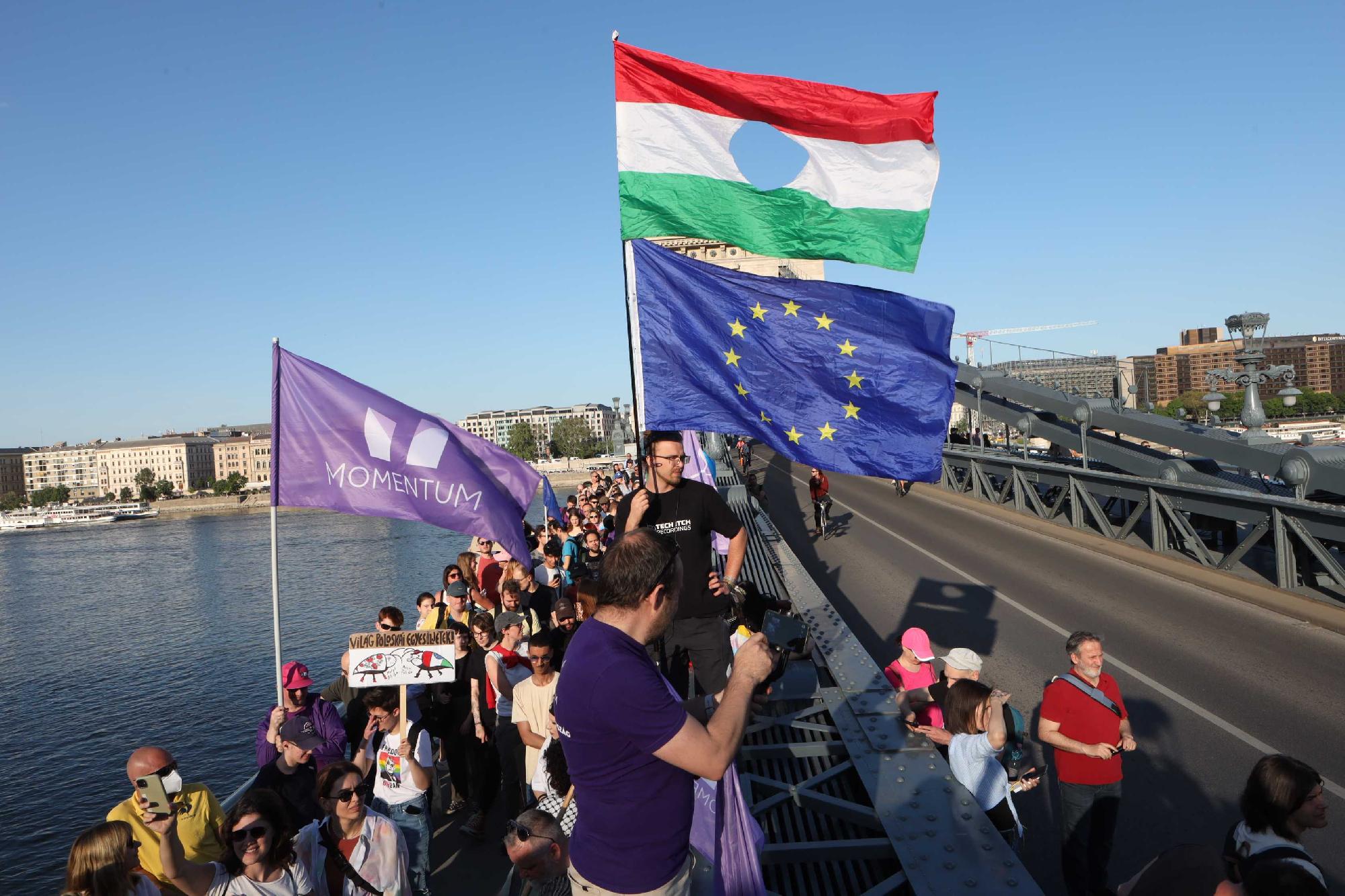 A Momentum képviselőinek sikerült kitenniük az Európai Unió zászlaját a Belügyminisztériumra és közben skandálták, hogy "Európa", illetve "Éljen a szabadság és a demokrácia!".