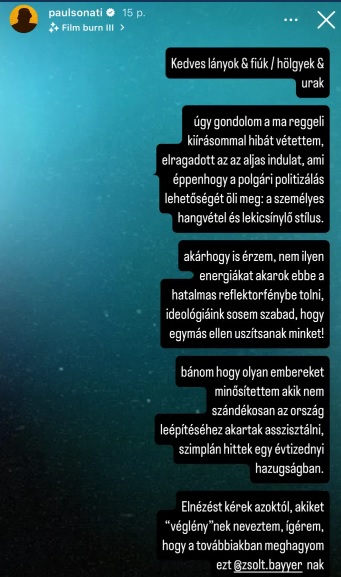Azahriah egy Instagram-történetben kért elnézést szerda reggeli – azóta törölt – posztja miatt.