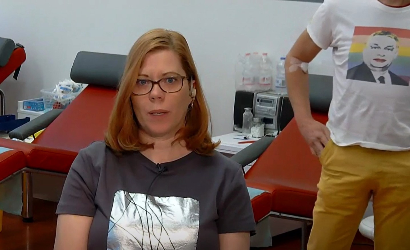 30 másodpercig állt az M1 híradójának kamerája előtt élő adásban egy férfi szivárványmintás kisminkelt Orbánt ábrázoló pólóban, miközben a csatorna az Országos Vérellátó Szolgálat működéséről tudósított – írja a Telex.