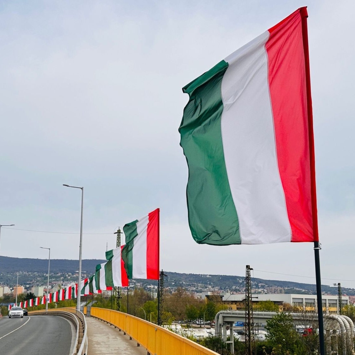 A pécsi belváros több pontján és két felüljárón nemzeti színű zászlókat helyeztetett ki a városvezetés – tudatta Péterffy Attila polgármester. Az indoklás szerint a „közelmúlt eseményeire és a pécsiek visszajelzéseire figyelve” és a városban tapasztalható közhangulatra reagálva díszítették fel úgy a várost,