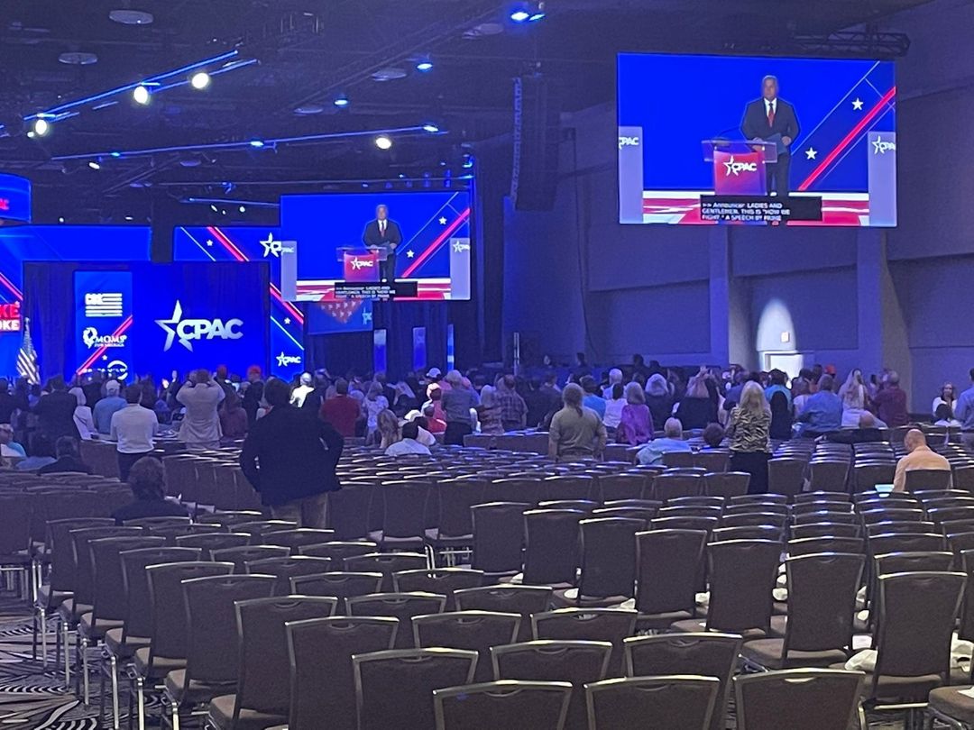 Az alábbi felvételen az látható, hogy körülbelül a terem felét töltik meg az érdeklődők azon a panelbeszélgetésen, amin Greg Abbott texasi kormányzó vett részt. Ez a panelbeszélgetés délután 13:10-től negyed óráig tartott, 13:25-ig. Ezt követően lépett színpadra Orbán Viktor, aki 13:40-től beszélt 14:10-ig. A Reuters képe szerint Orbán beszéde alatt is meglehetősen hézagos volt a nézőtér.