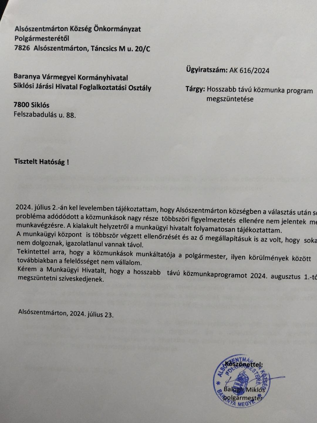A harmadik levélen ugyan nincs aláírás,de ettől még életszerűnek tűnik - írja Hadházy. A faluban több ember állítja, hogy maga a bukott, de átmenetileg még regnáló polgármester kezdeményezte a kormányhivatali ellenőrzést, ahol nem találták a helyükön a közmunkásokat.