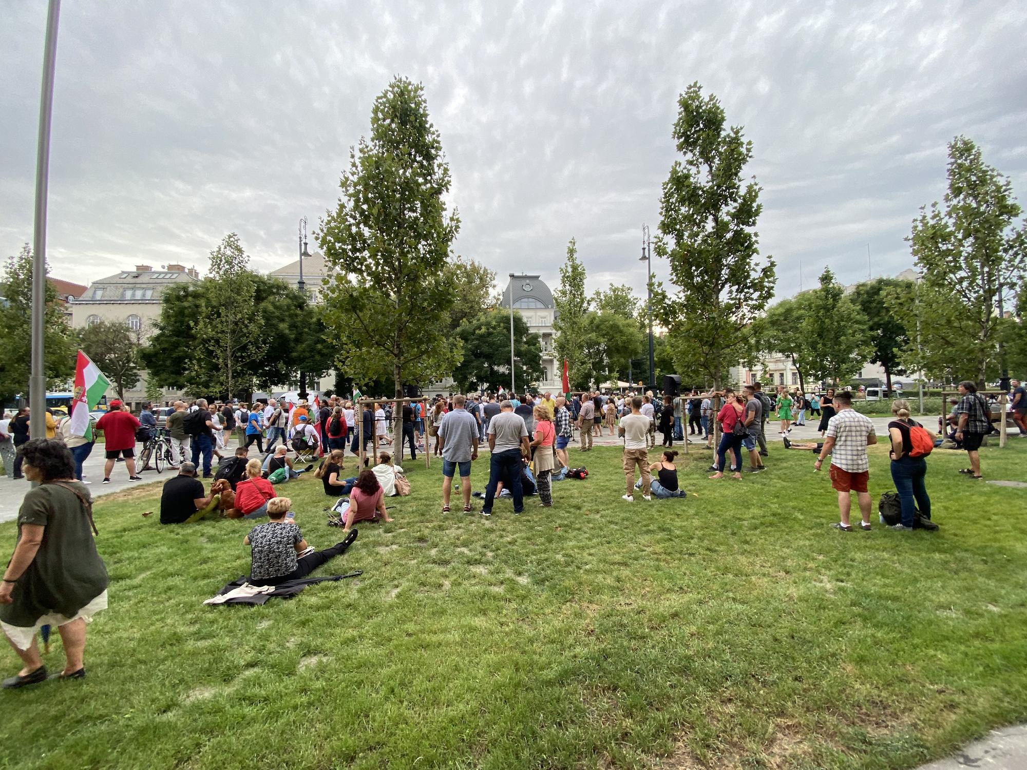 A Klubrádió munktársa a helyszínen bejelentkezve legfeljebb 100 fősre becsülte a tüntetők számát.